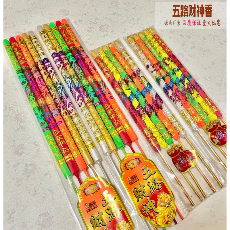 仏香メーカー卸売五路財神50cm18mm五彩凸龍香凸字香土香五色香