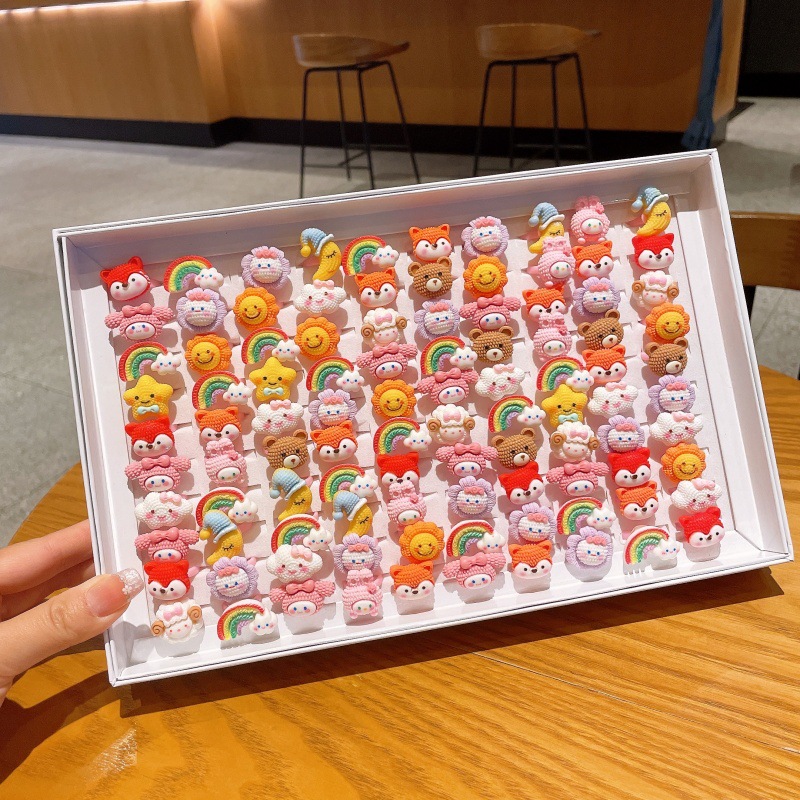 クロスボーダー子供の漫画の花の指輪の50個の箱の開口のつや消しのプラスチックの指輪の誕生日の贈り物の幼稚園
