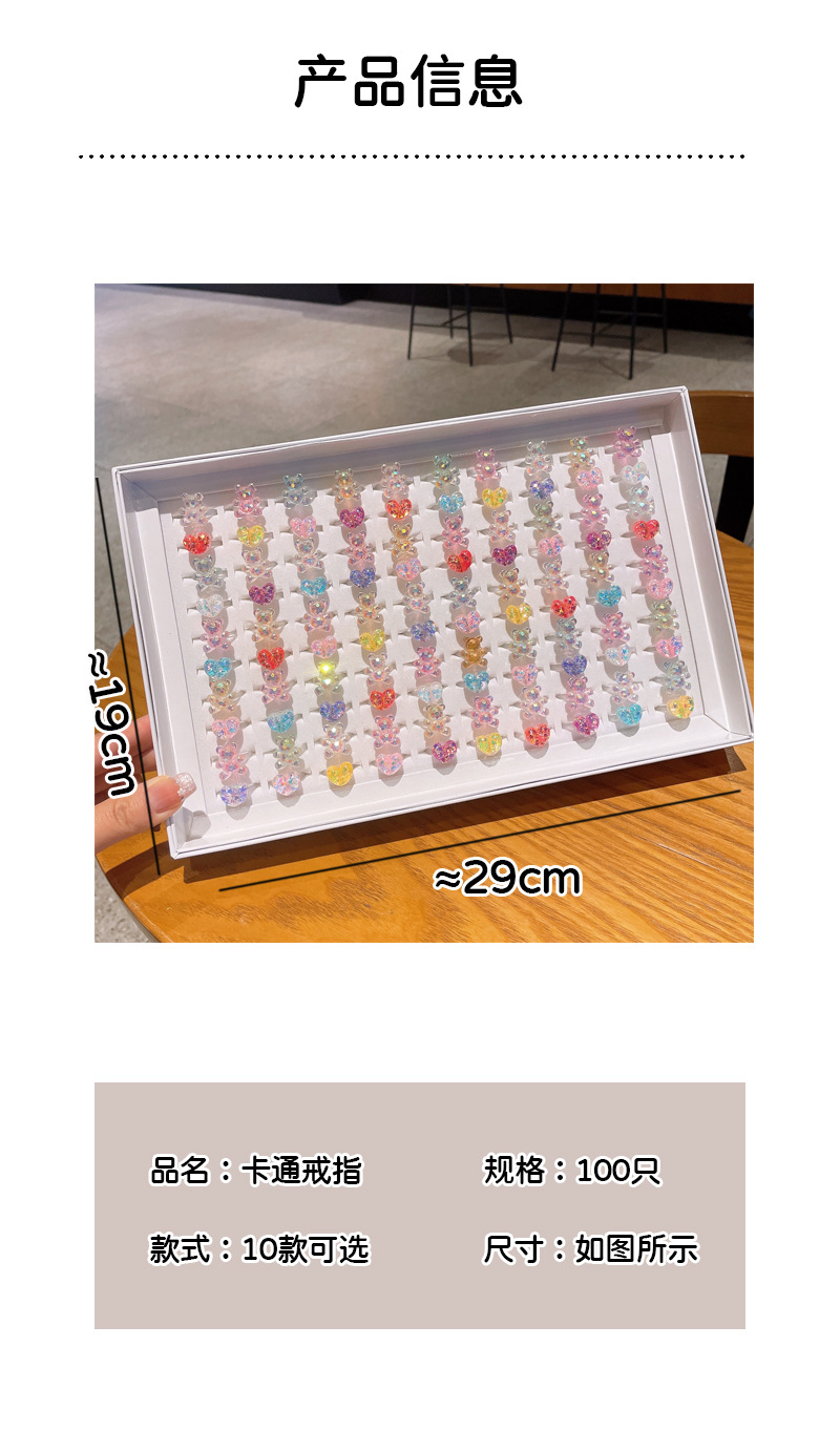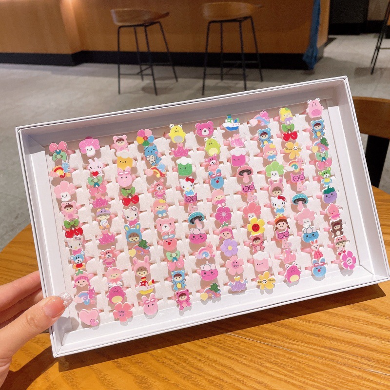 子供用リング、女性用漫画ジュエリー、プリンセスリング、樹脂幼稚園ギフト、女の子用ハンドジュエリー、大量購入割引