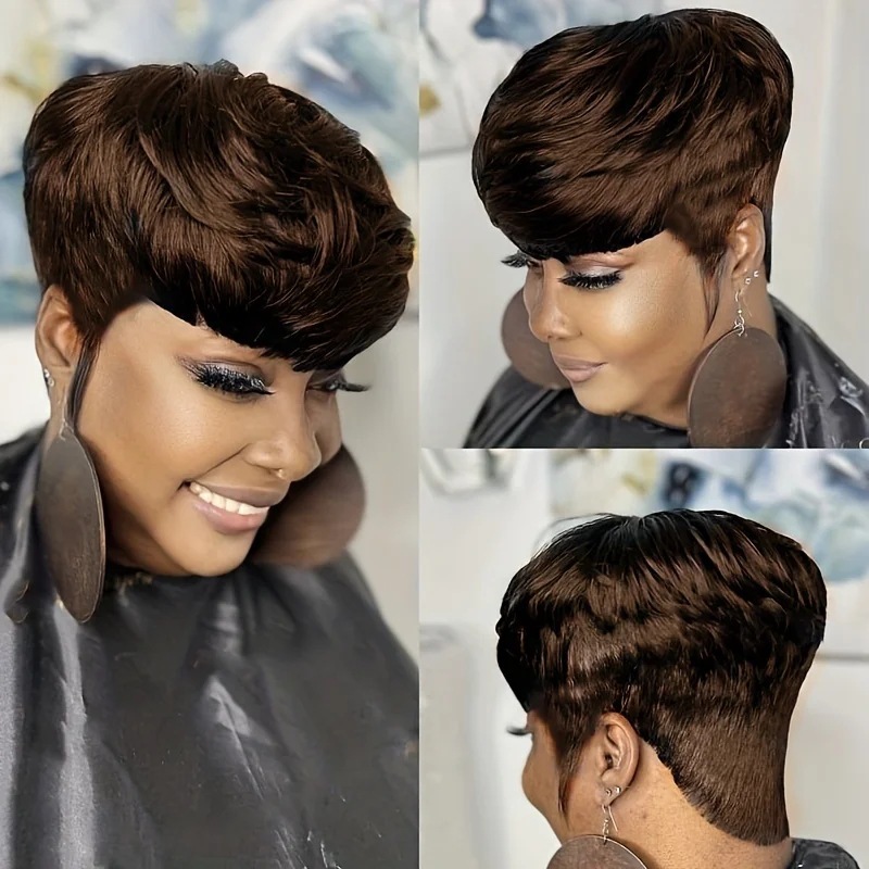 2025新款欧美短发 斜刘海多色短卷发 化纤高温丝假发厂家批发代发