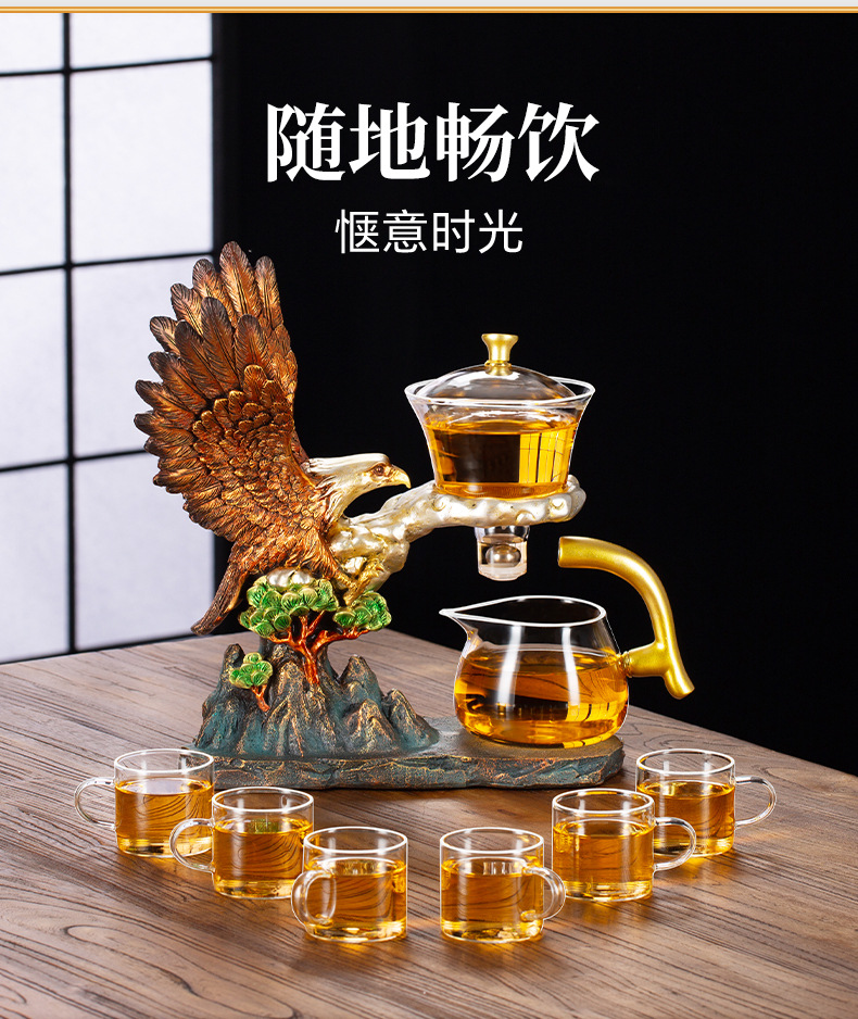 クリエイティブな大鵬の翼ガラスティーセット家庭用カンフーティーカップ怠惰な磁気ティーポットオフィス受付