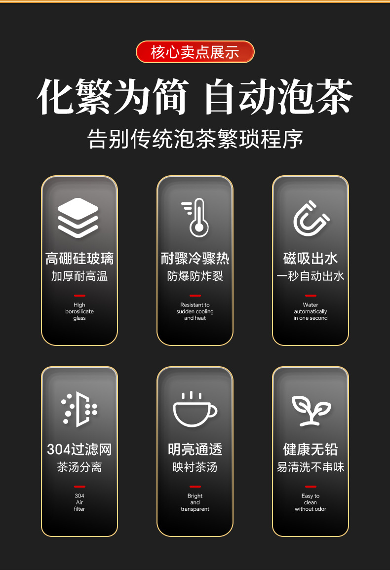 ガラスティーセットセット家庭用磁気半自動怠惰なお茶作りアーティファクトオフィスカンフーティーカップティーポット小さなセット