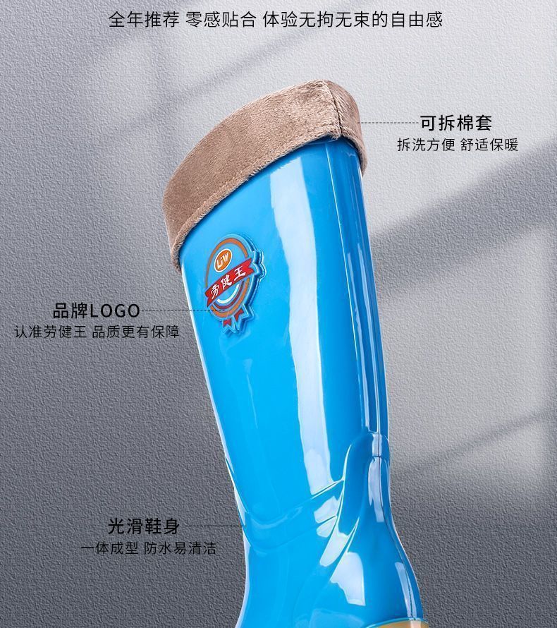 雨靴男高筒水靴牛筋底耐摩耗性中筒雨靴加毛労働保護ゴム靴工事現場釣り洗車ブーツ