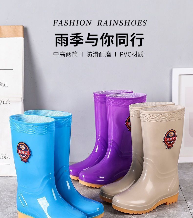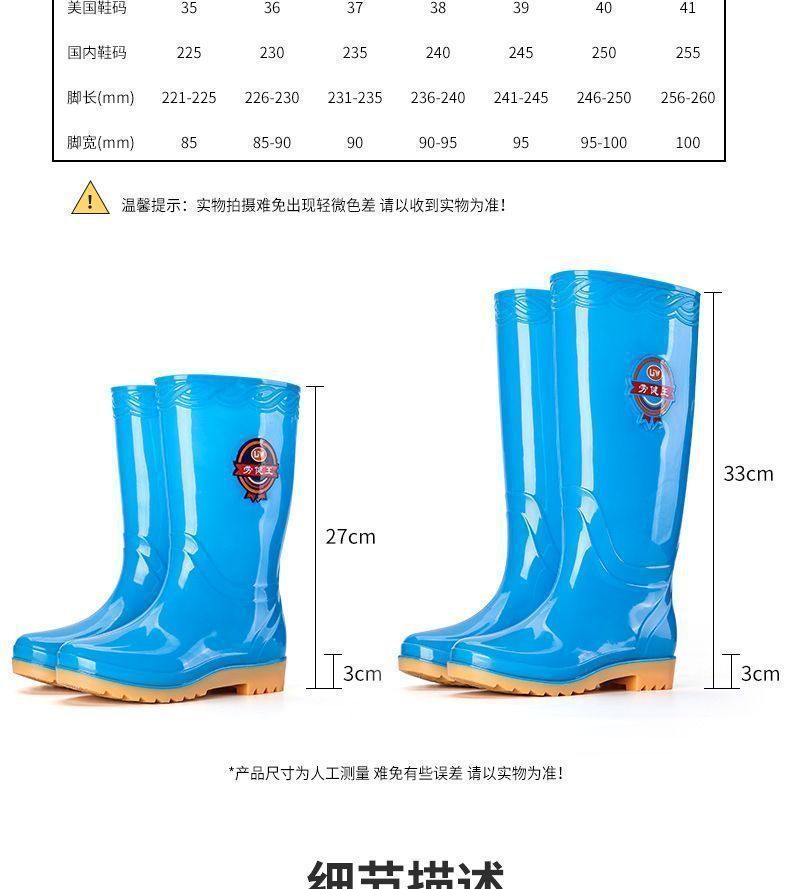高中筒雨靴女性式雨靴ファッション防水滑り止め水靴洗濯キッチン作業ゴム靴カバー靴バケツ靴