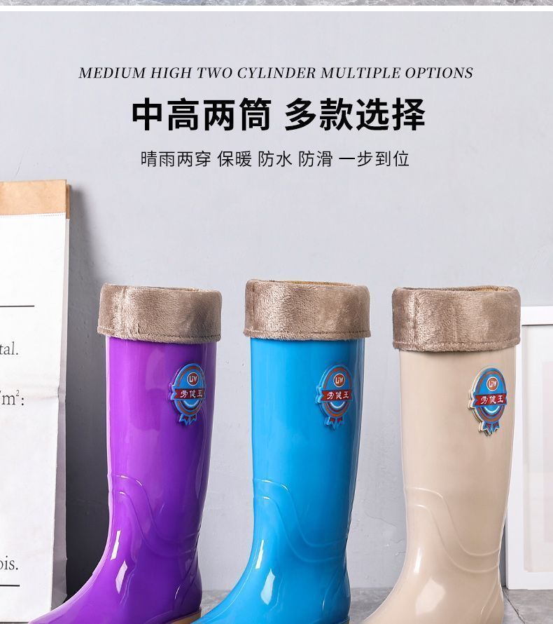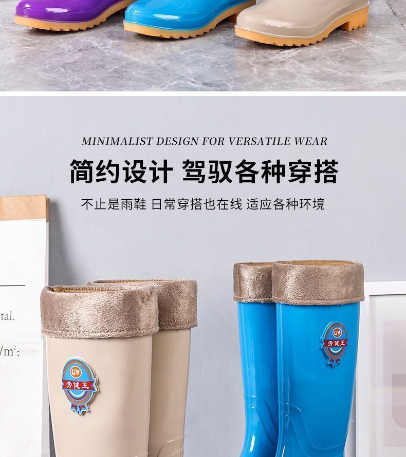 新しい高筒水靴労働保護キッチン防水滑り止め靴雨靴女性とベルベット保温長雨靴工場卸売り