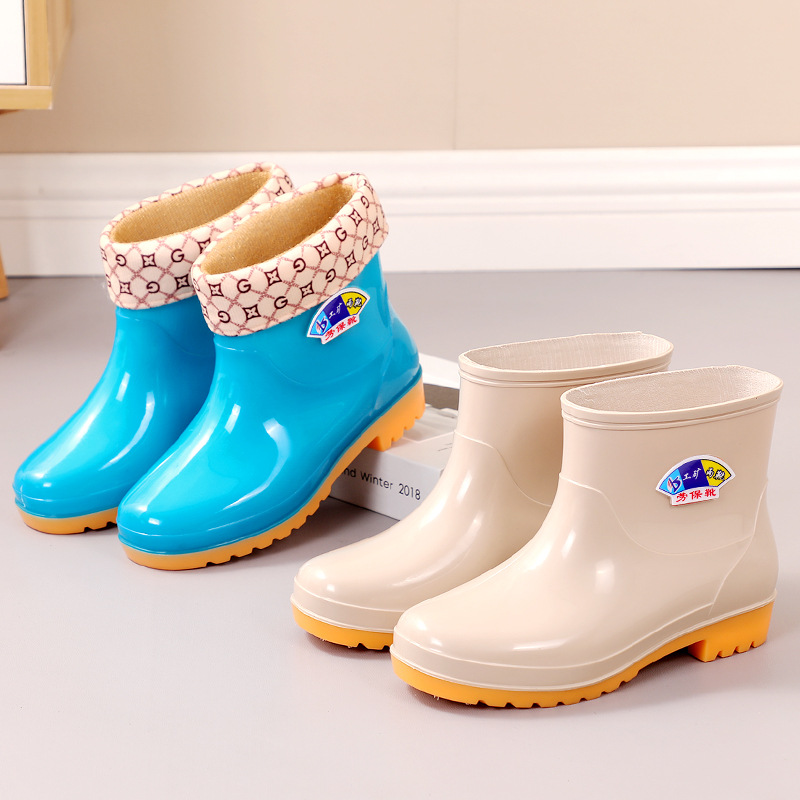 保暖女士雨鞋中筒厨房新款水鞋四季成人雨靴防滑耐磨水靴加绒胶鞋