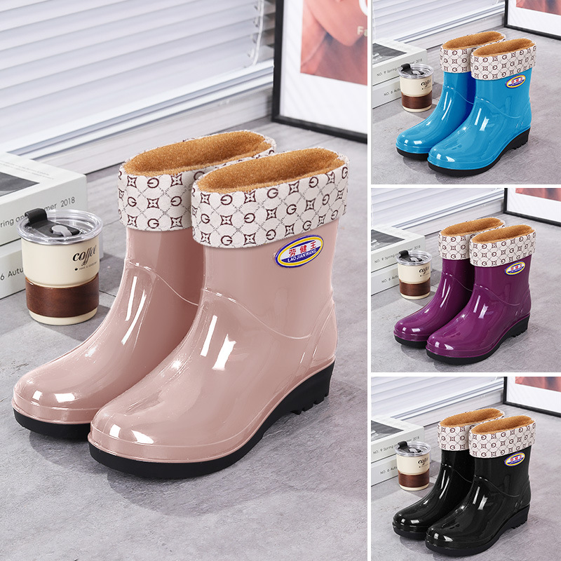 卸売レディースレインブーツミッドハイファッションプラスベルベットキッチン作業ゴム靴レインブーツ暖かい冬のウォーターシューズ滑り止め大人