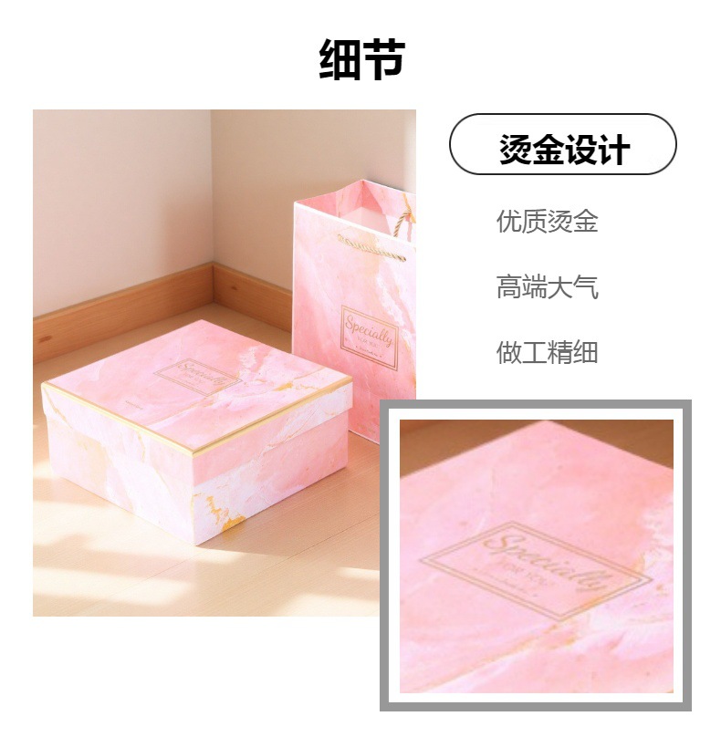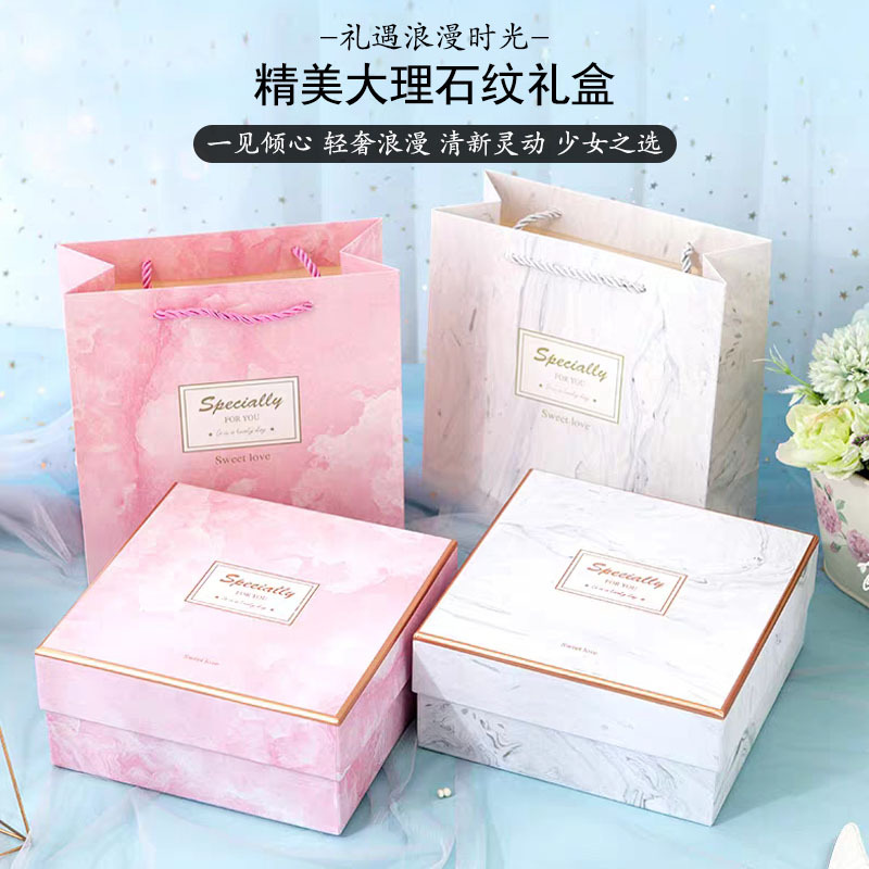 大理石天地盖伴手礼礼盒方形礼物盒情人节女友包装盒情人节礼盒