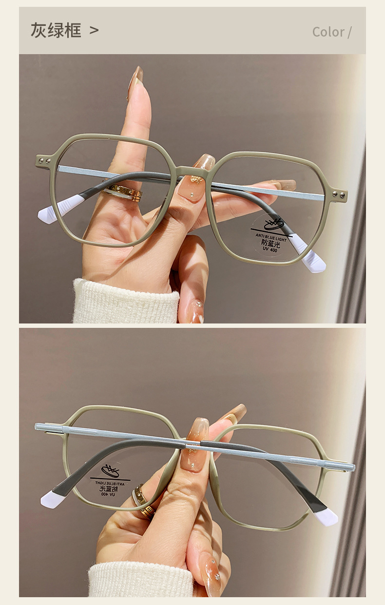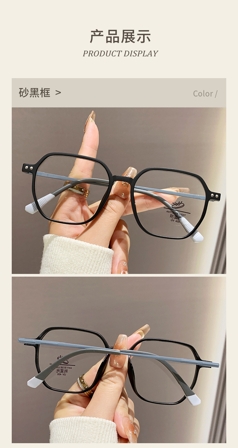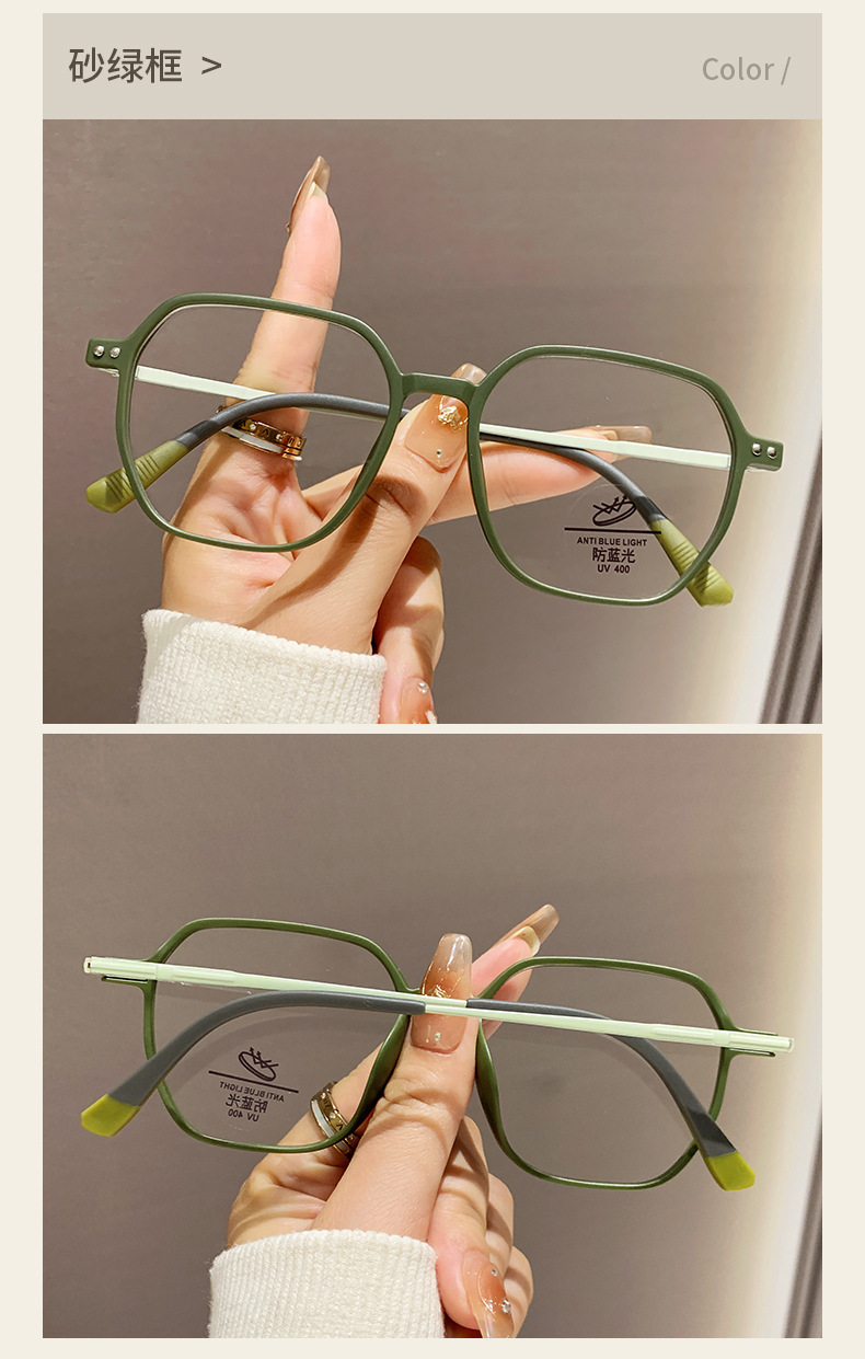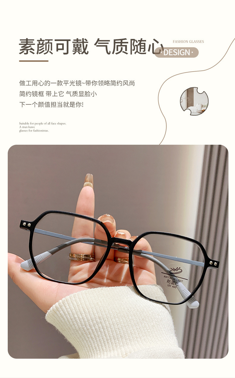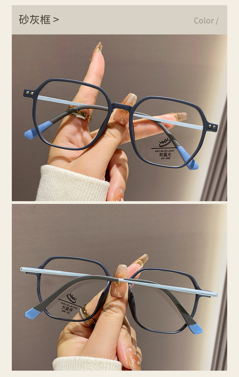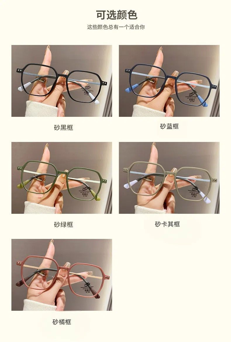 新型大枠感光変色近視メガネ素顔多角形光学メガネ超軽量女子四角いメガネフレーム