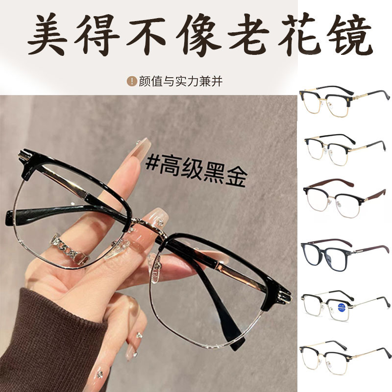 2025时尚防蓝光老花眼镜男方框眉毛框高档老花镜中老年老花镜合集