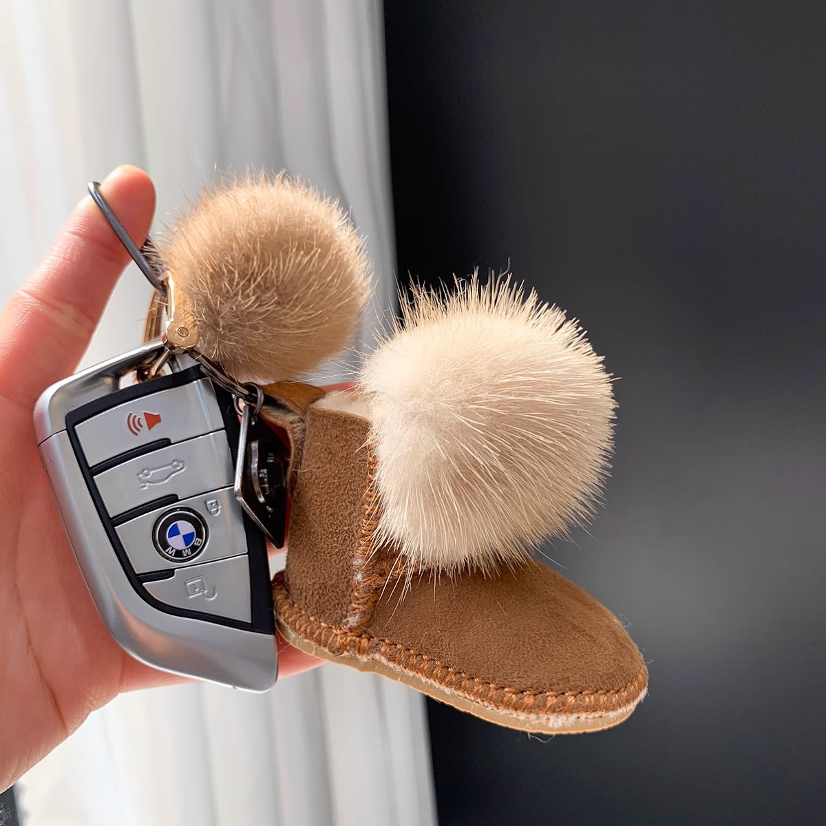 新型ミニミンクの毛の雪の靴のキーホルダーの小さい靴の自動車のキーホルダーのカバンのペンダントのファッションのアクセサリー