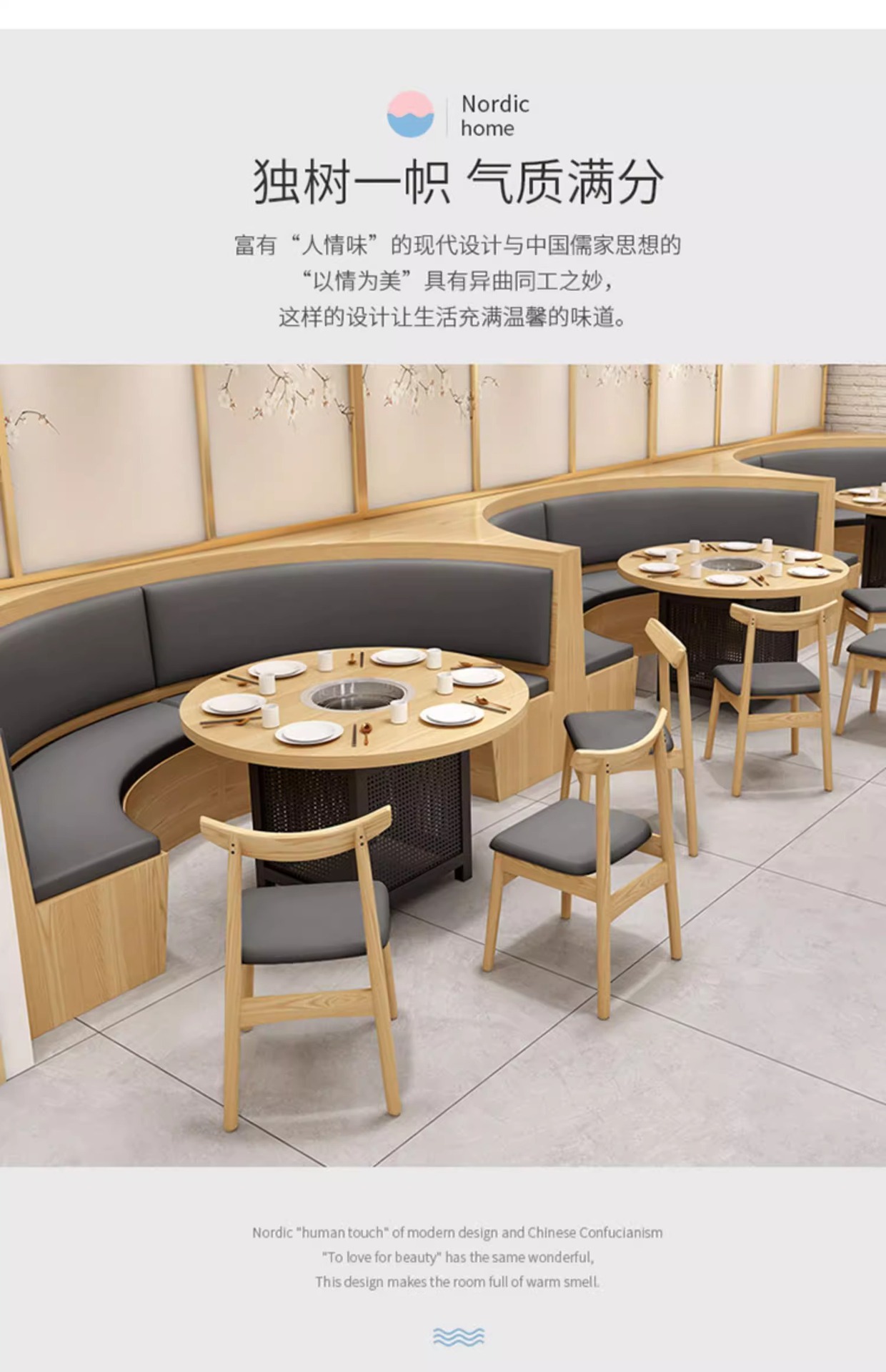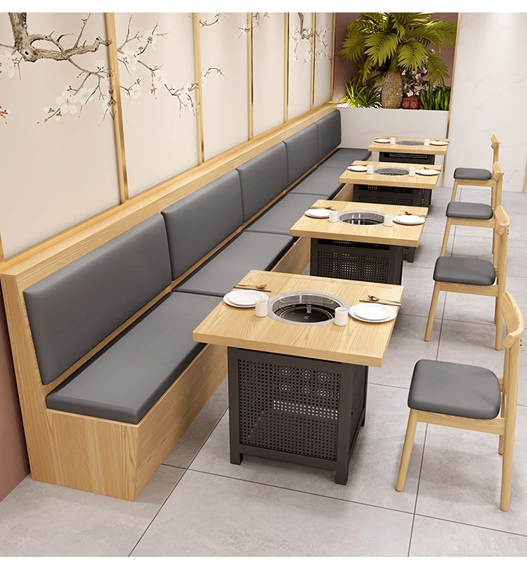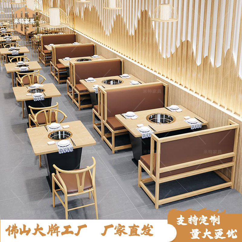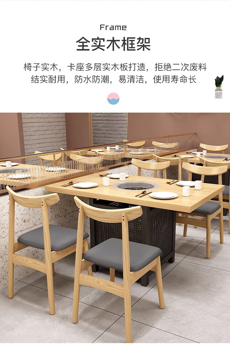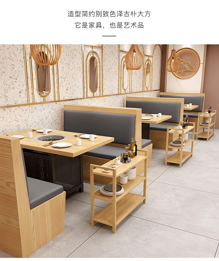 実木火鍋店電磁ストーブ一体テーブル業務用焼肉ホテル無煙鍋ソファーカードテーブルと椅子の組み合わせ