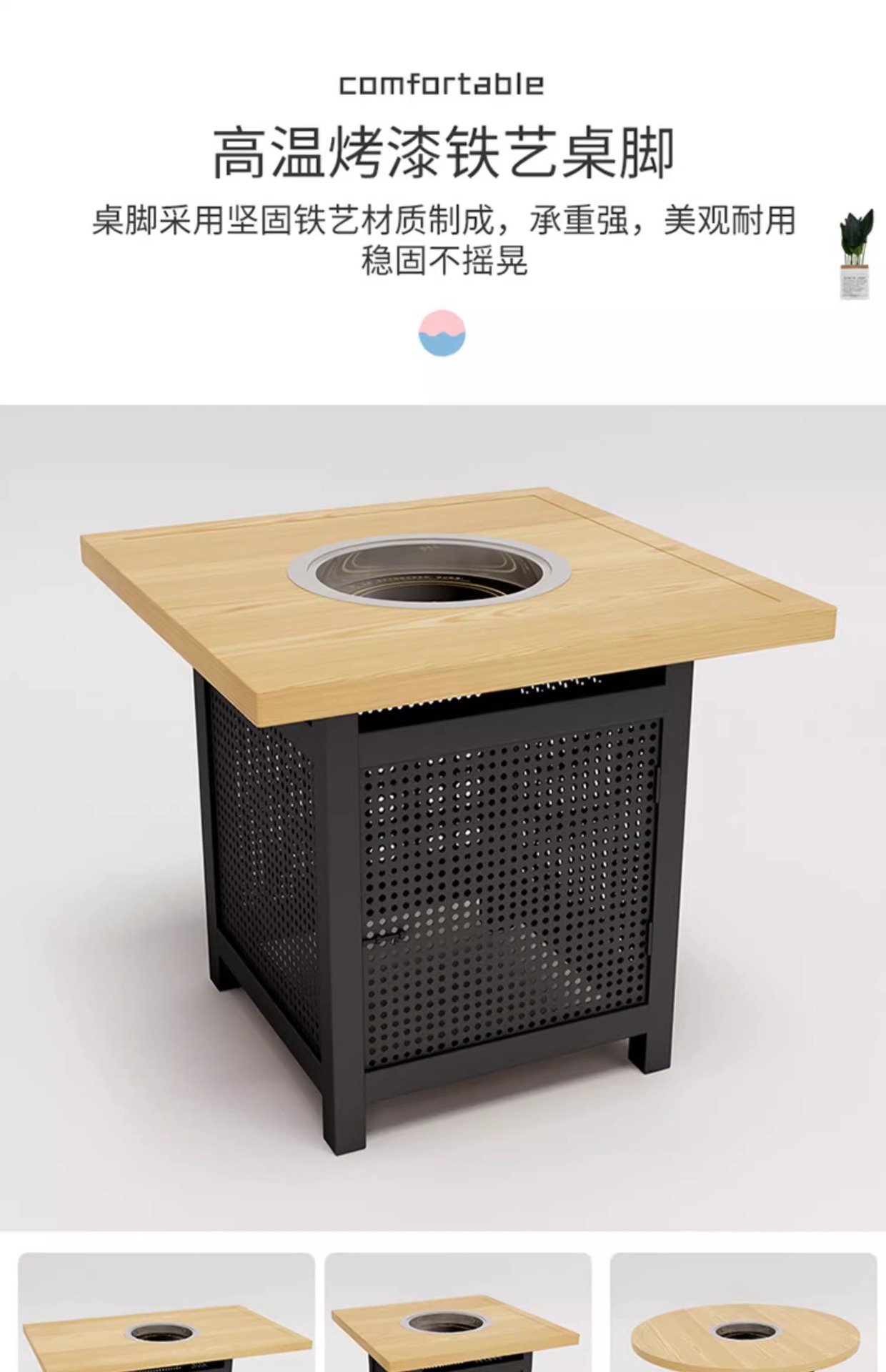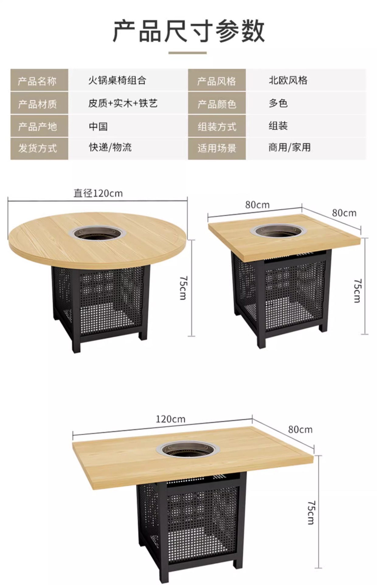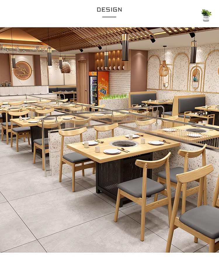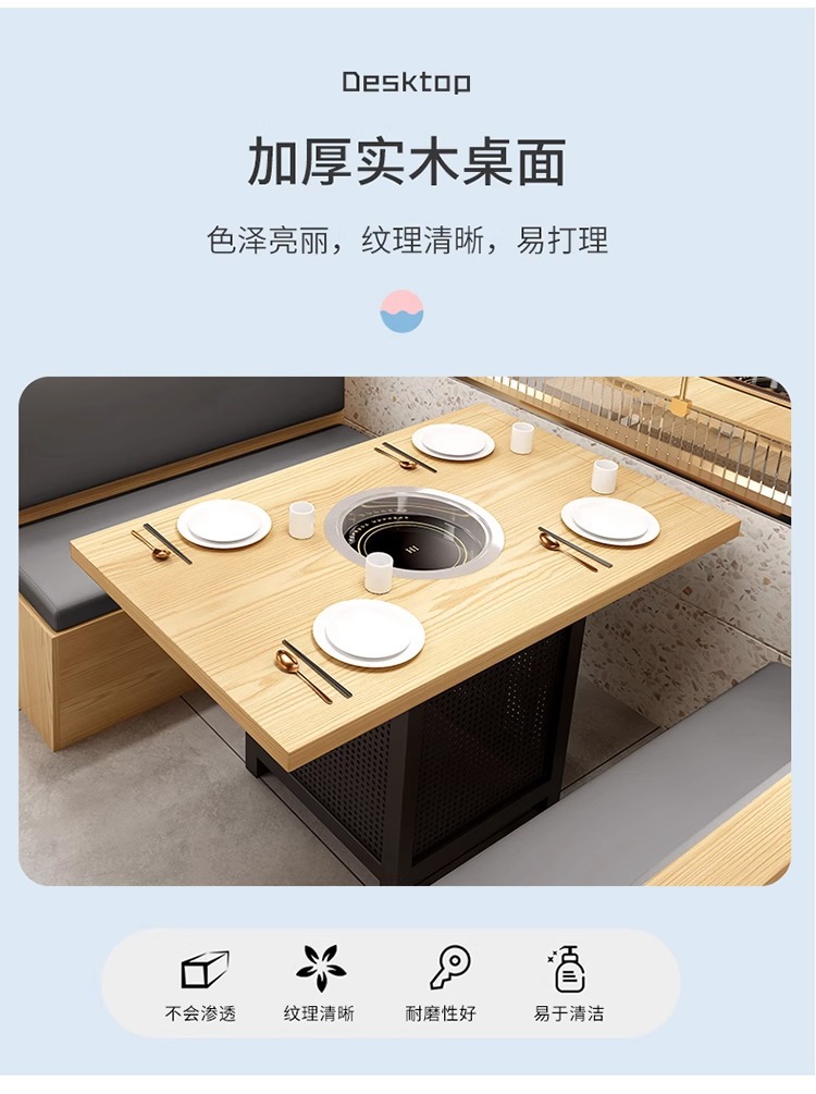 実木火鍋店電磁ストーブ一体テーブル業務用焼肉ホテル無煙鍋ソファーカードテーブルと椅子の組み合わせ