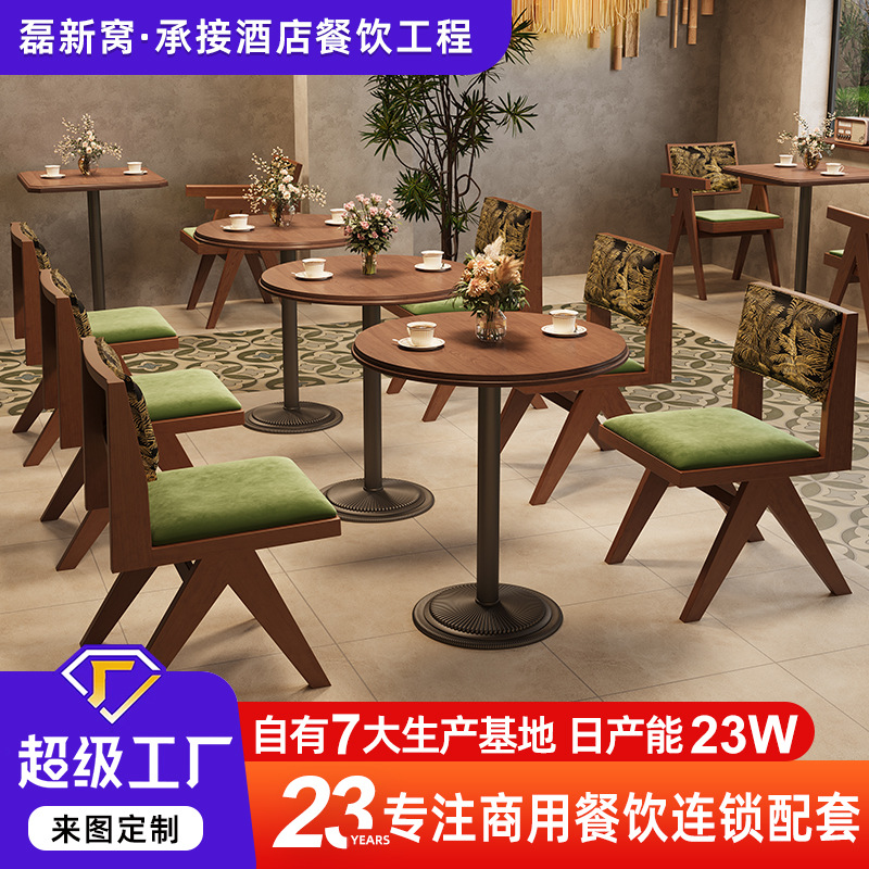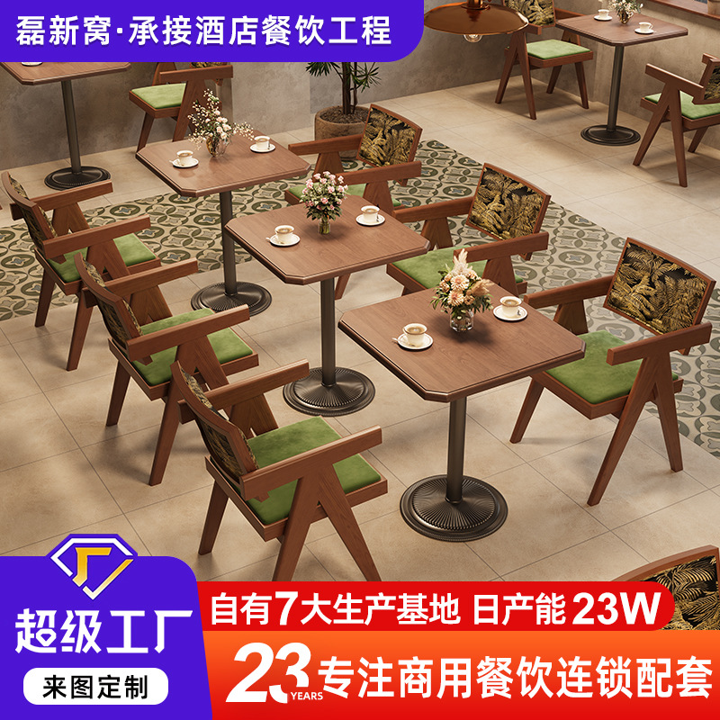 インターネットセレブ東南アジアミルクティーショップテーブルと椅子アンティークスタイル無垢材籐カフェビストロ商業ダイニングテーブルと椅子の組み合わせ