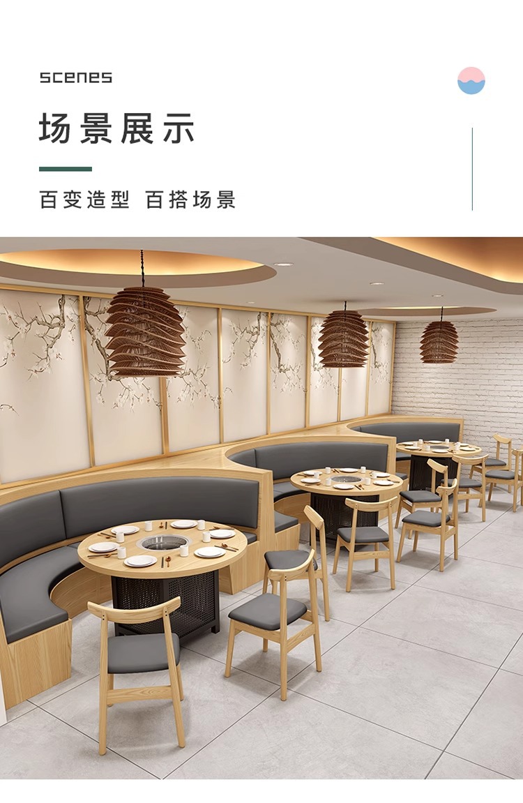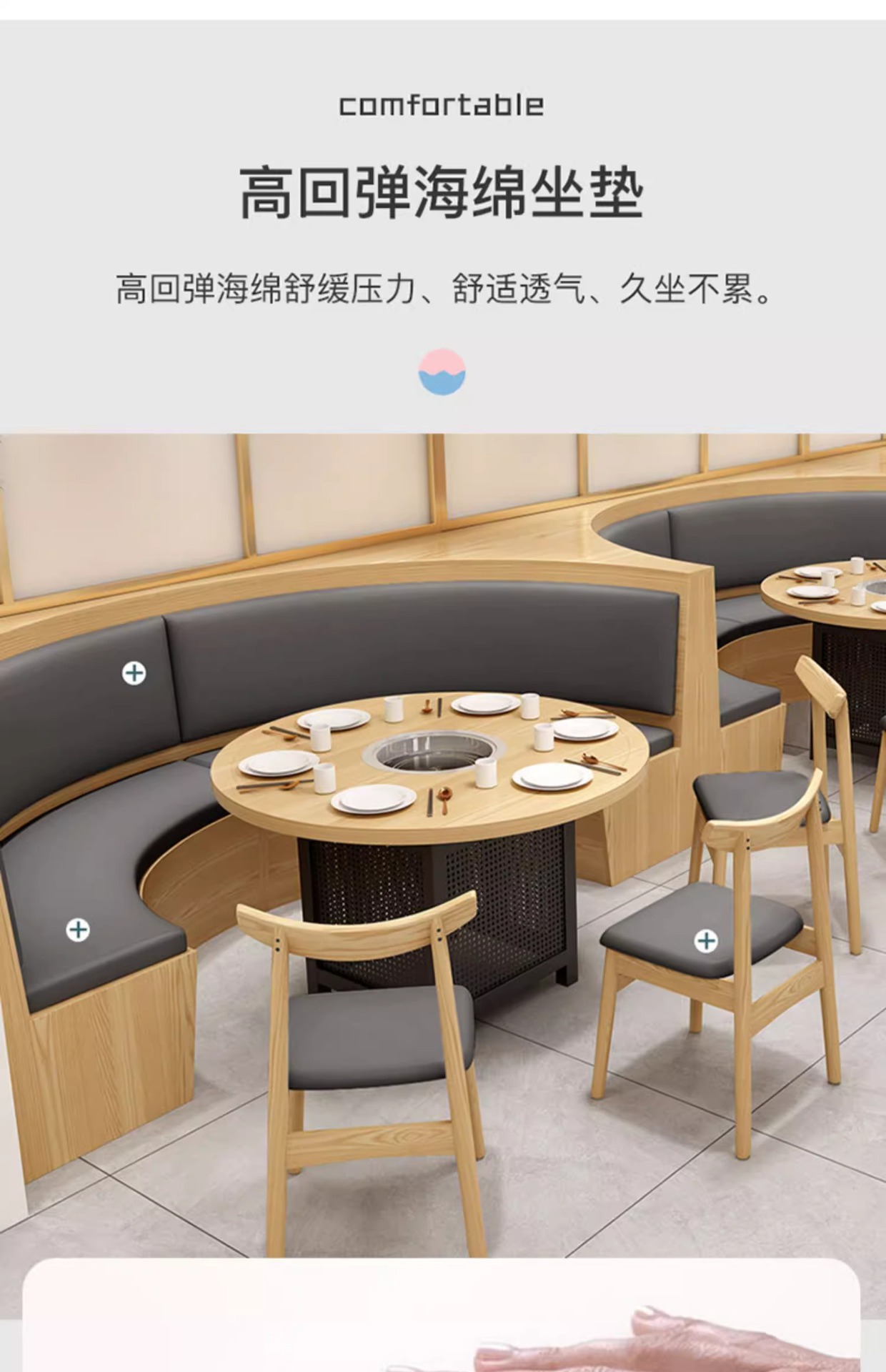 烤肉桌子实木岩板火锅桌电磁炉一体卡座沙发餐桌椅组合商用火锅桌
