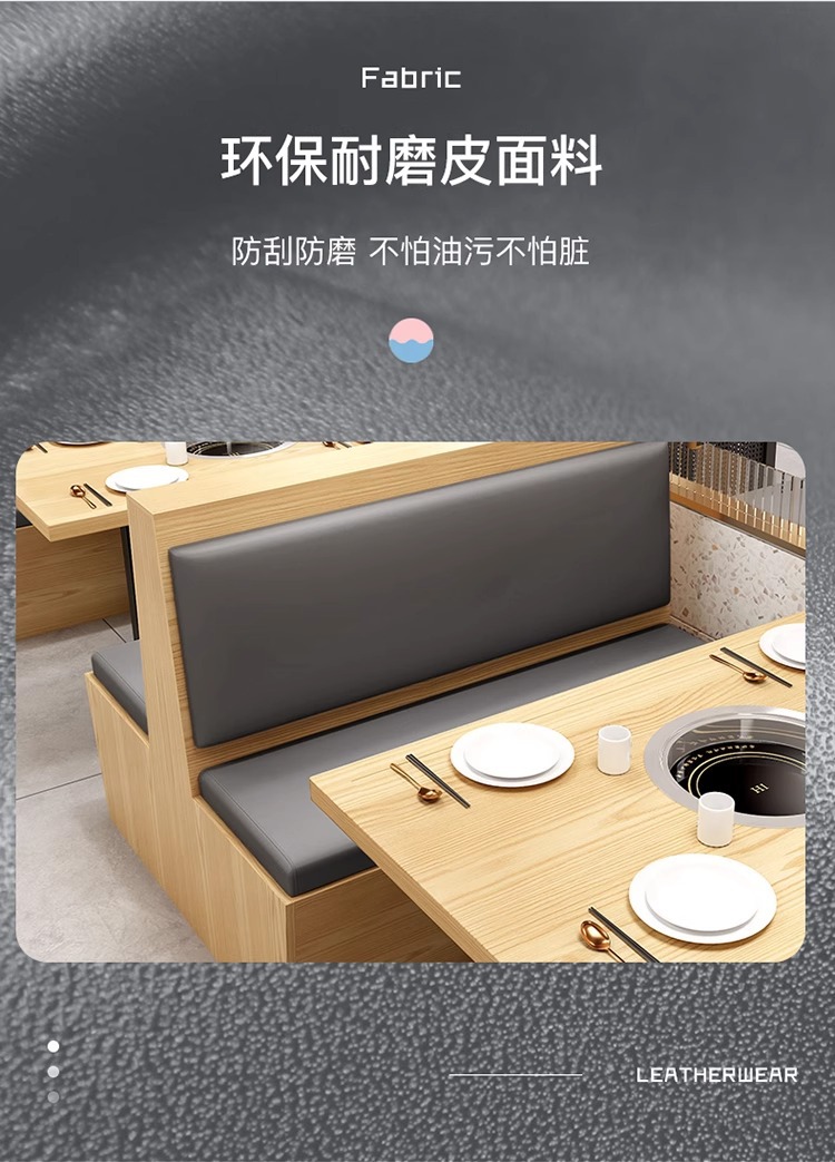 金边岩板大理石火锅桌子电磁炉商用一体无烟烤肉桌椅沙发卡座组合