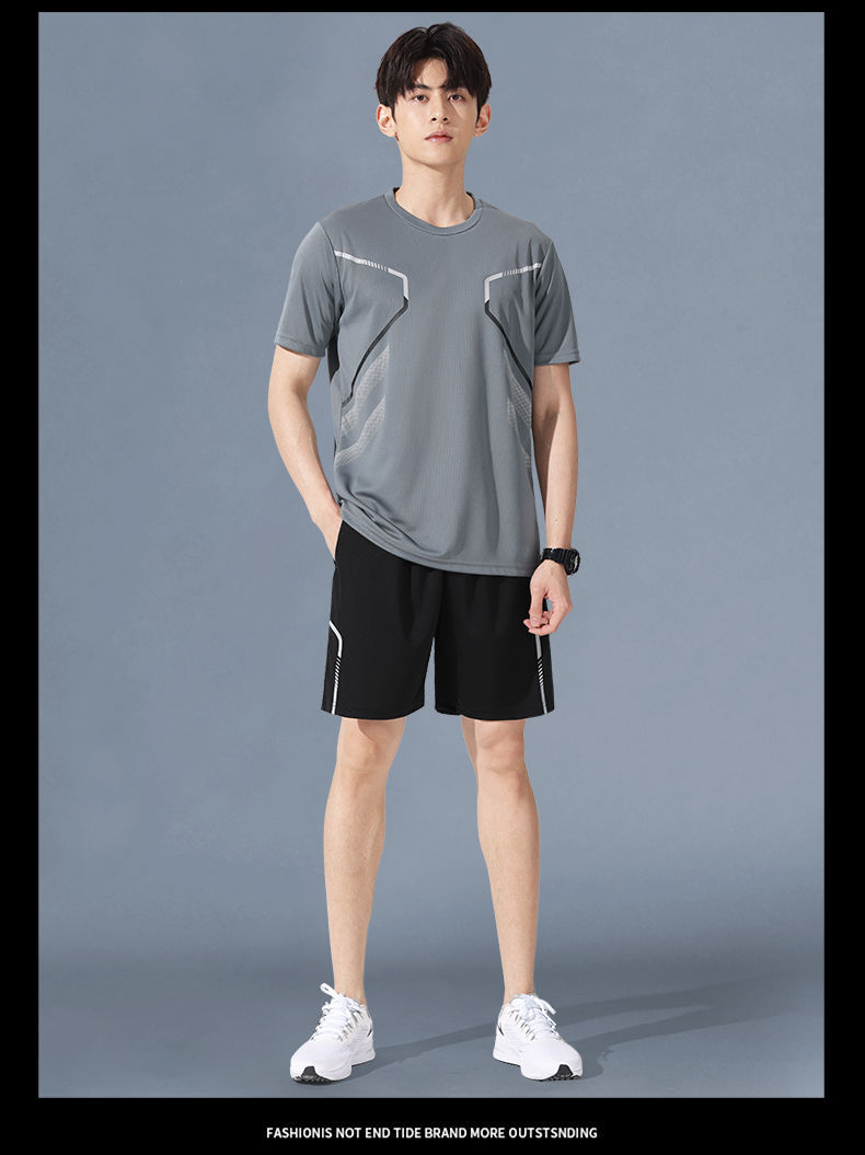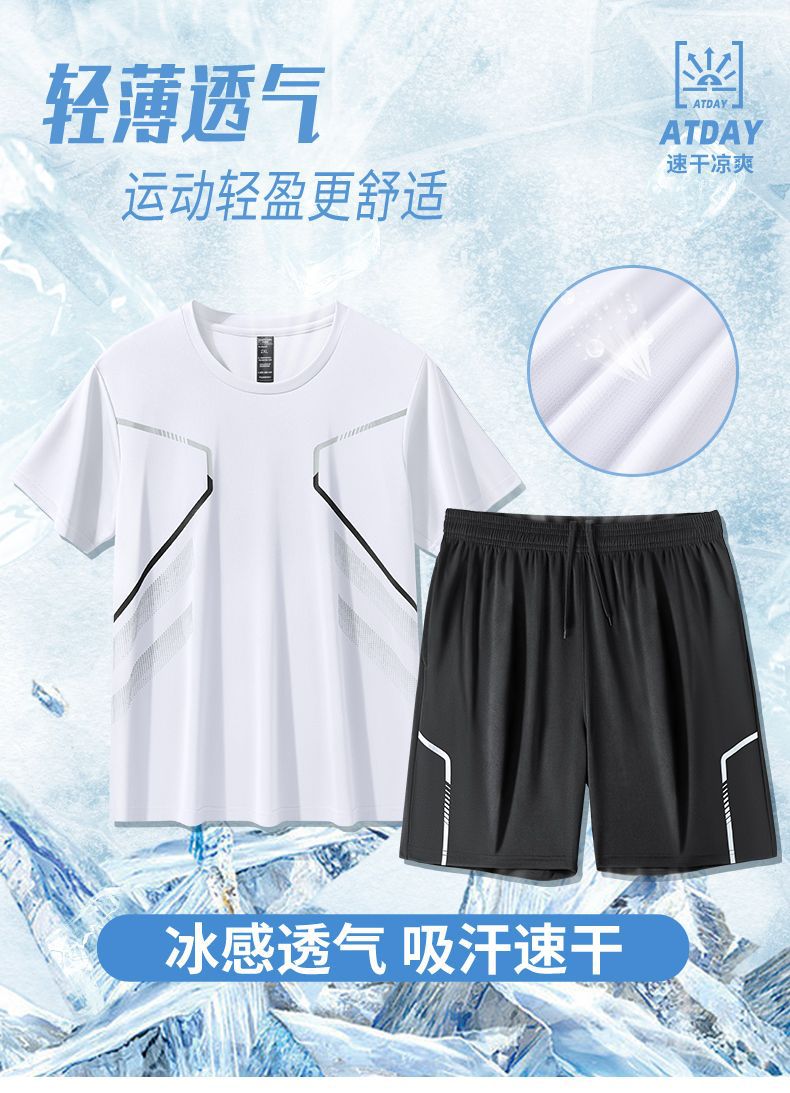 夏のゆったりとした薄手のカジュアルショートパンツTシャツトレンディなメッシュ半袖スポーツスーツメンズアイスシルクコンプリートセット