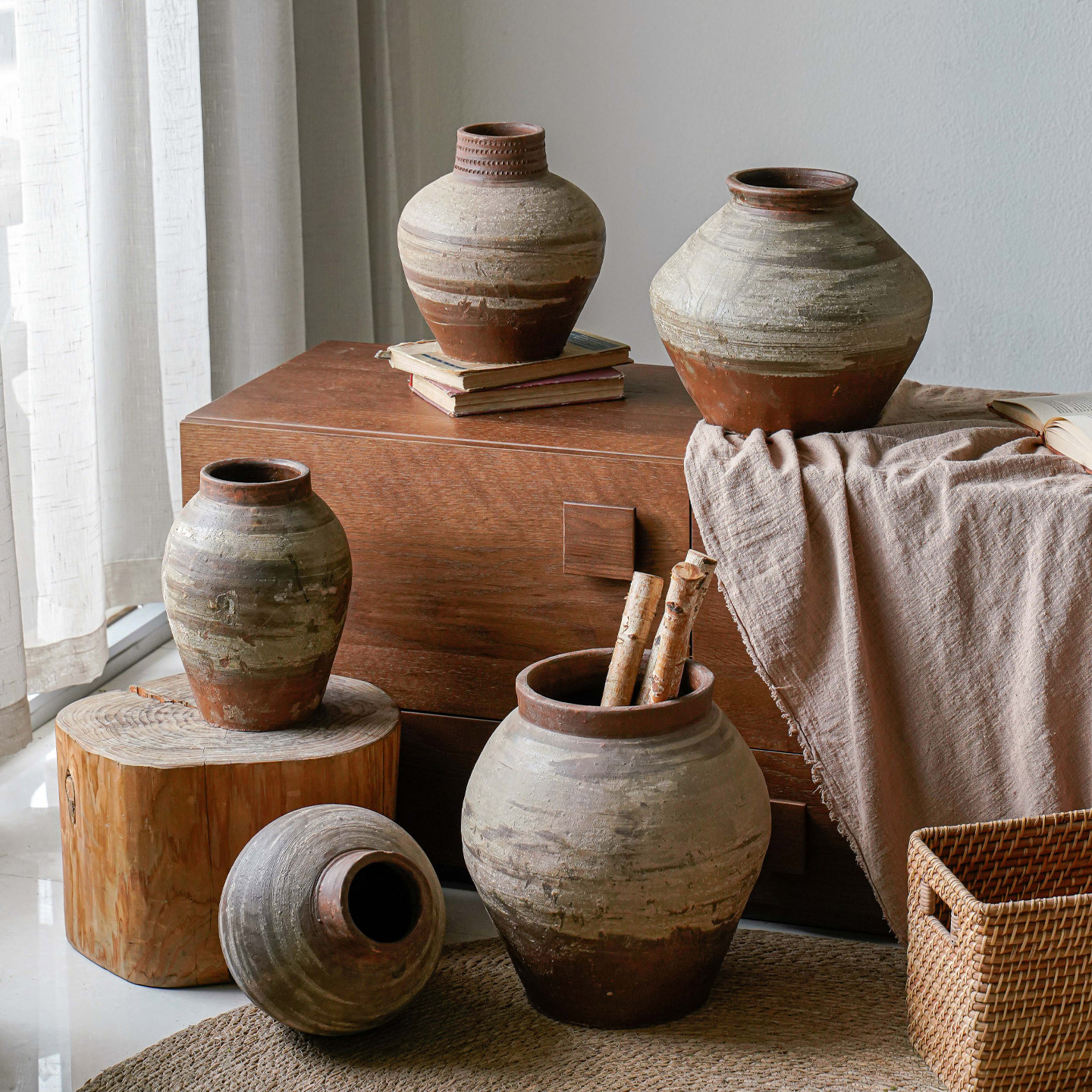 粗陶陶罐花盆花器插干花花瓶复古透气土陶瓦罐坛子室内外种黄荣幸