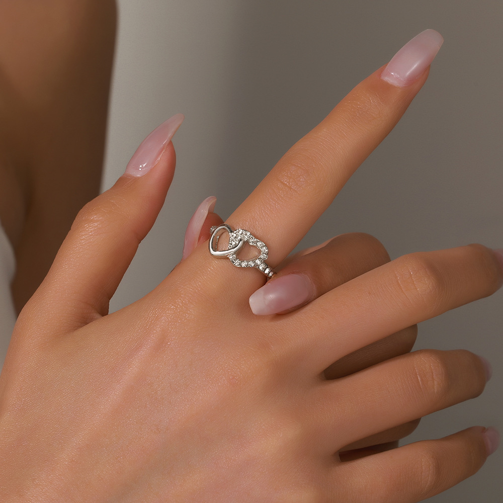 ヨーロッパとアメリカの国境を越えた新しい製品中空ラブダイヤモンドリング女性のファッション気質ニッチハート型インスタイルハンドジュエリー一括