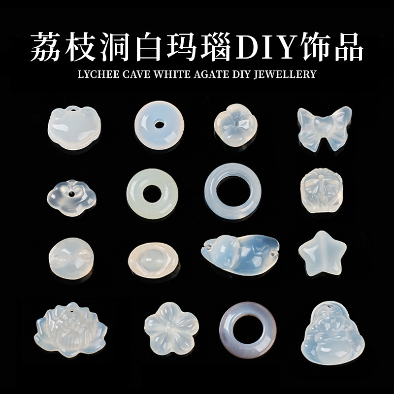 ナチュラル如意ロックホワイト瑪瑙ライチホール DIY ネックレス元宝蝶安全バックルマネーバッグジュエリーアクセサリー