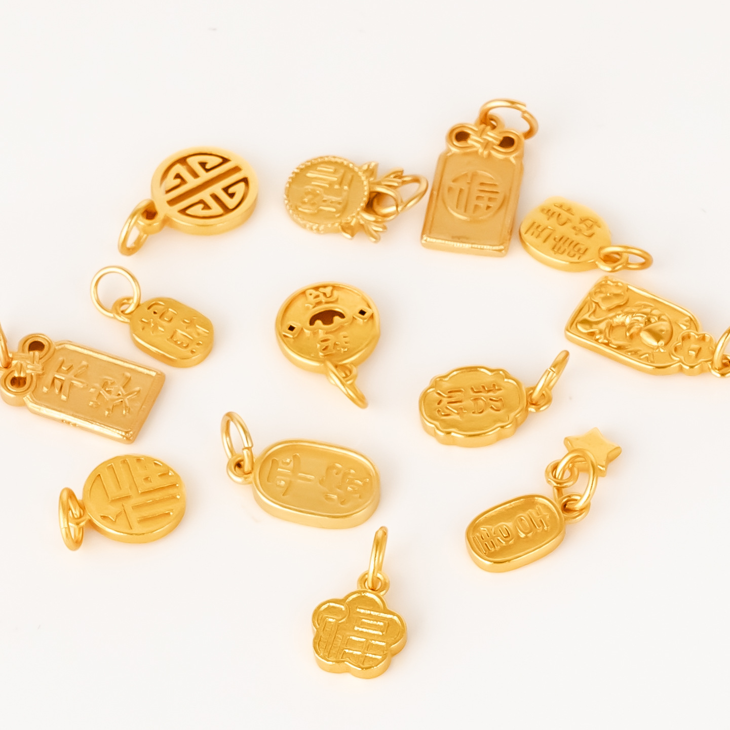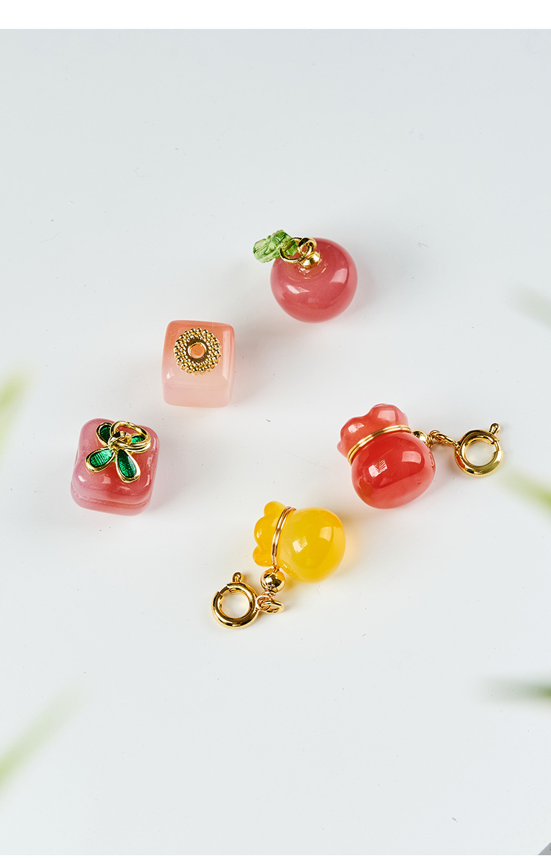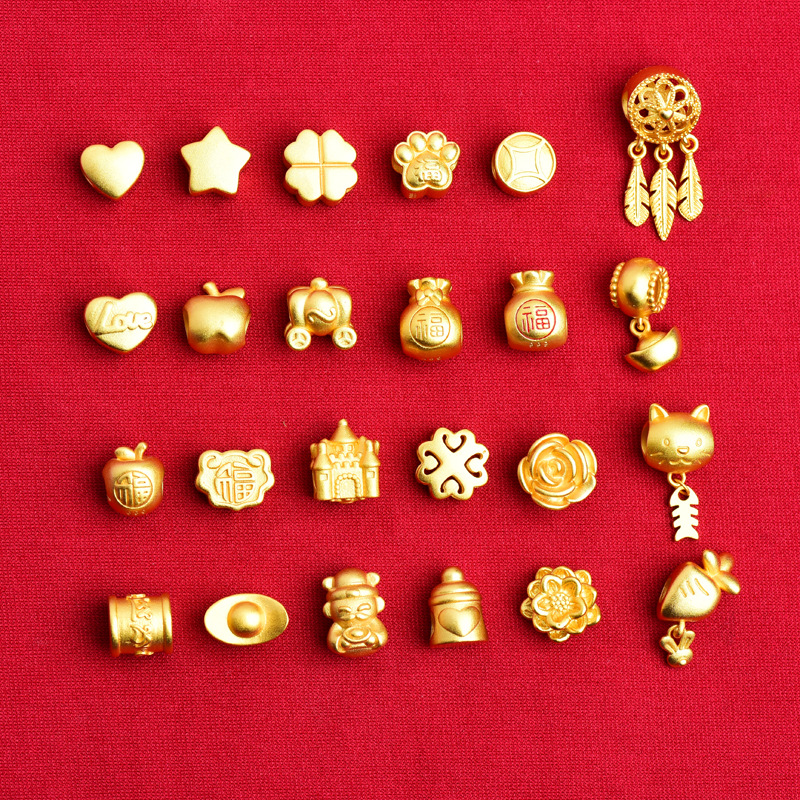 古法金DIYアクセサリー マットゴールドネックレス ビーズ ピーナッツ柿小魚型ペンダント チャーム ブレスレット ジュエリー 中国風
