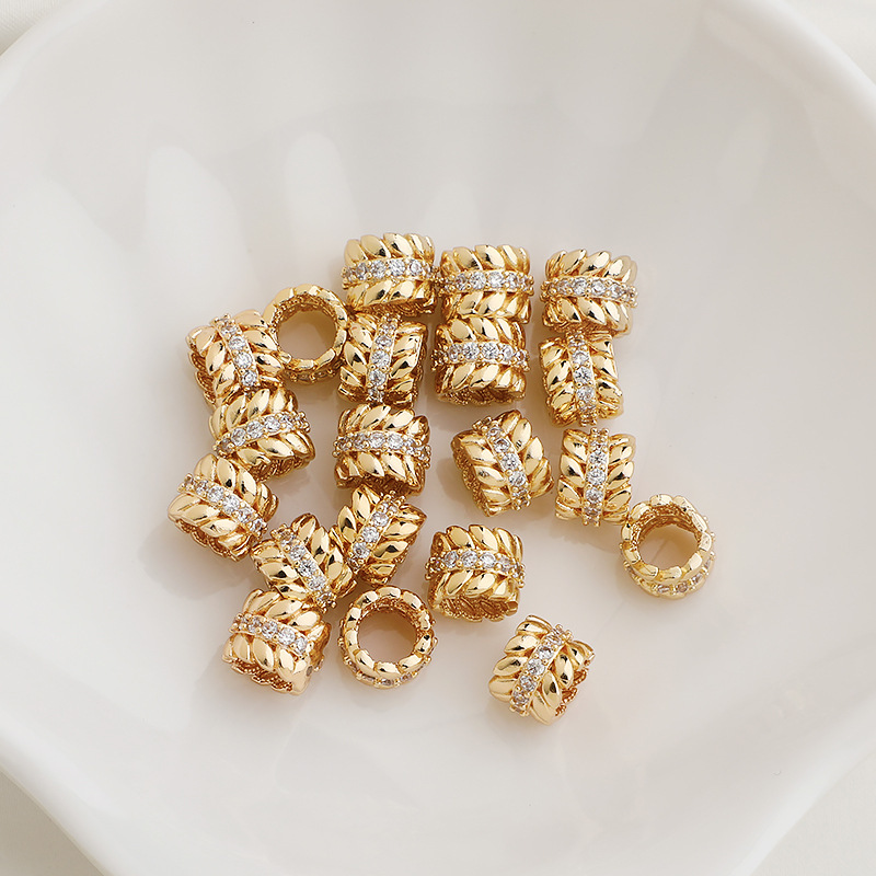 14K包金保色金色锆石麦穗大孔隔珠圆形羽毛串珠手工diy饰品配件