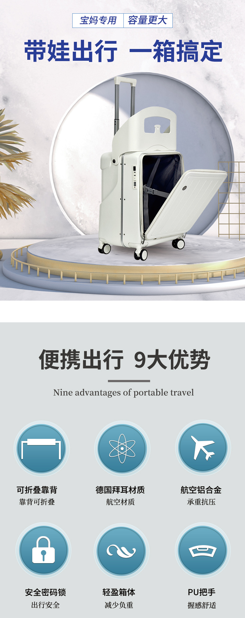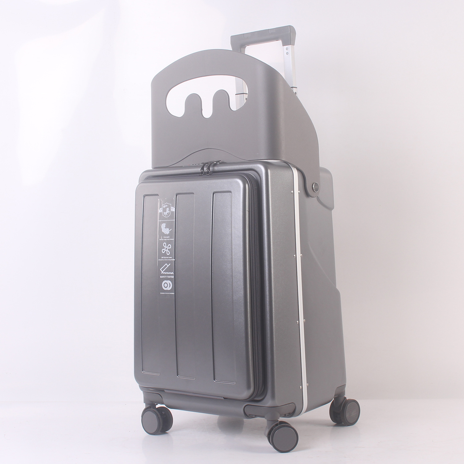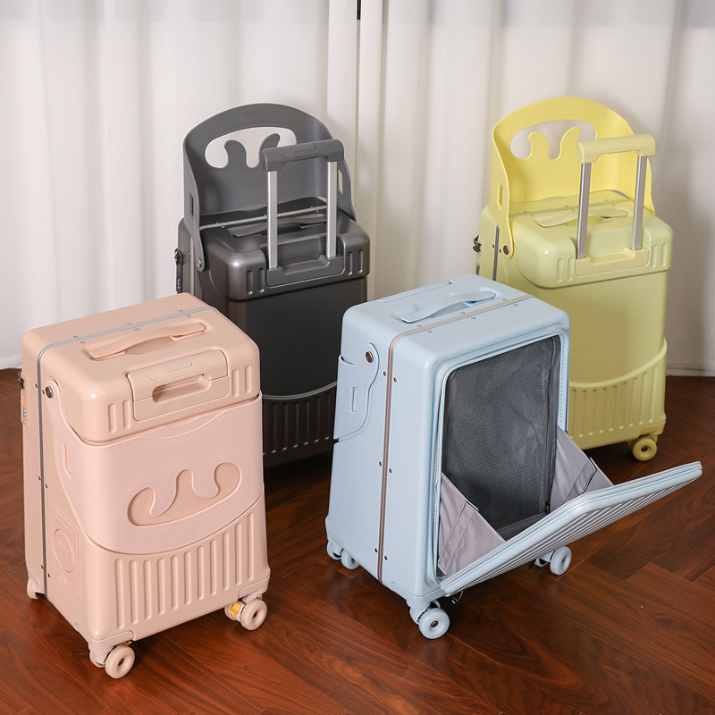 ママのスーツケースはフロントオープンで、子供が座って歩くことができ、多機能で搭乗可能な親子旅行トロリーケースです。