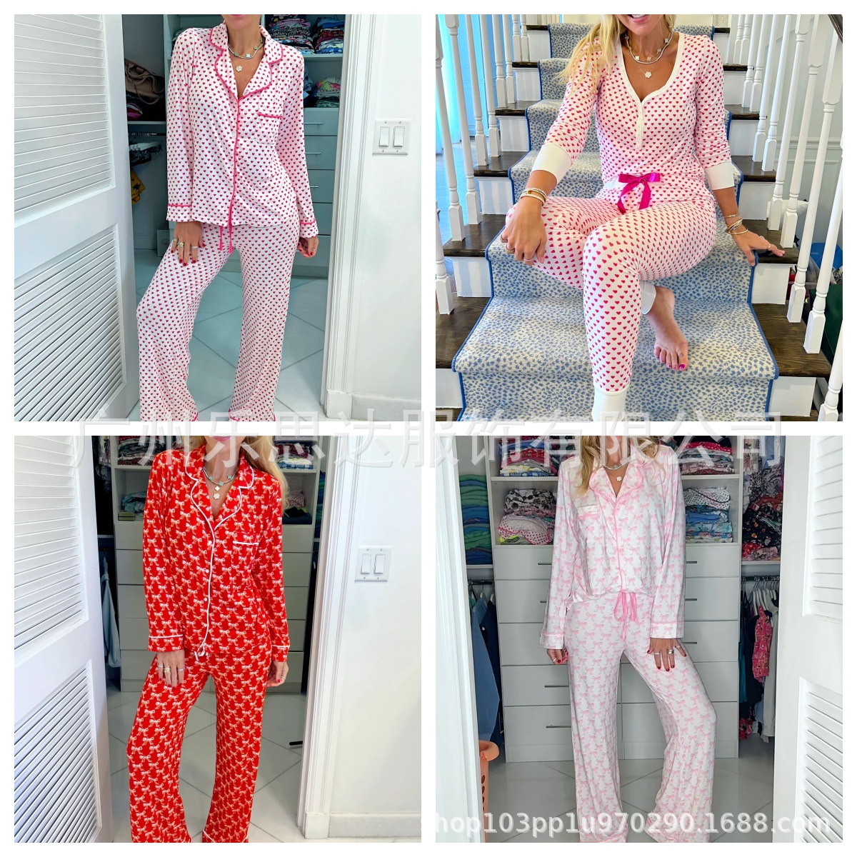 在庫あり Amazon独立サイト 外貿婦人服 バレンタインデー ハートプリント カーディガン 長袖 長ズボン パジャマセット 女性用