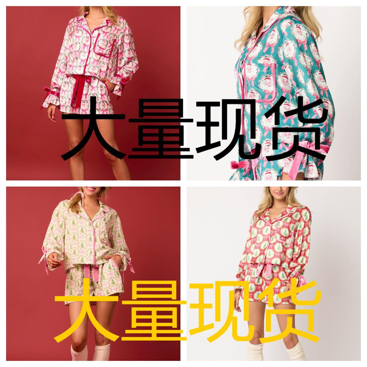 在庫あり Amazon 欧米向けクロスボーダー婦人服 クリスマス ミニくるみ割り人形 パジャマ 長袖シャツ ショートパンツセット