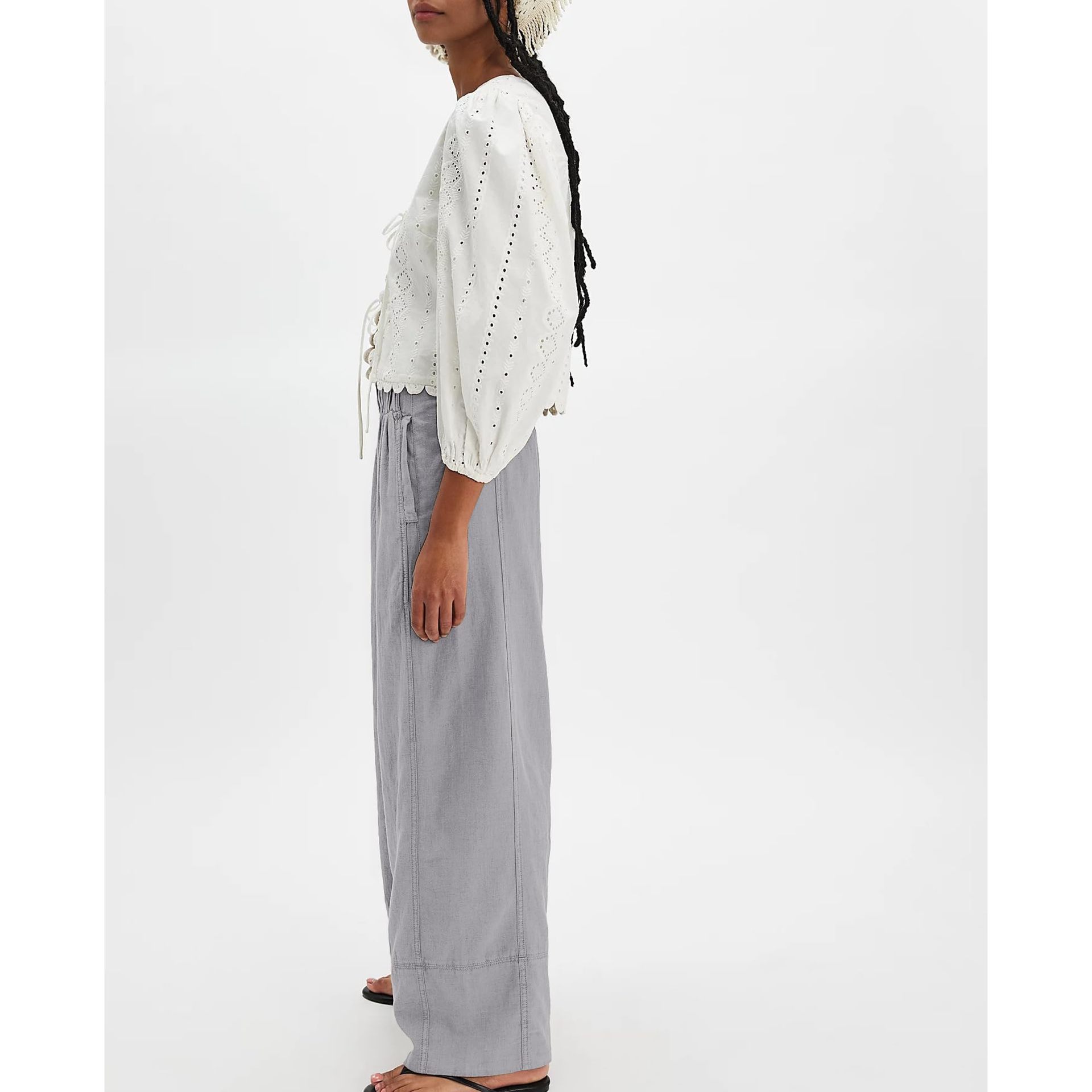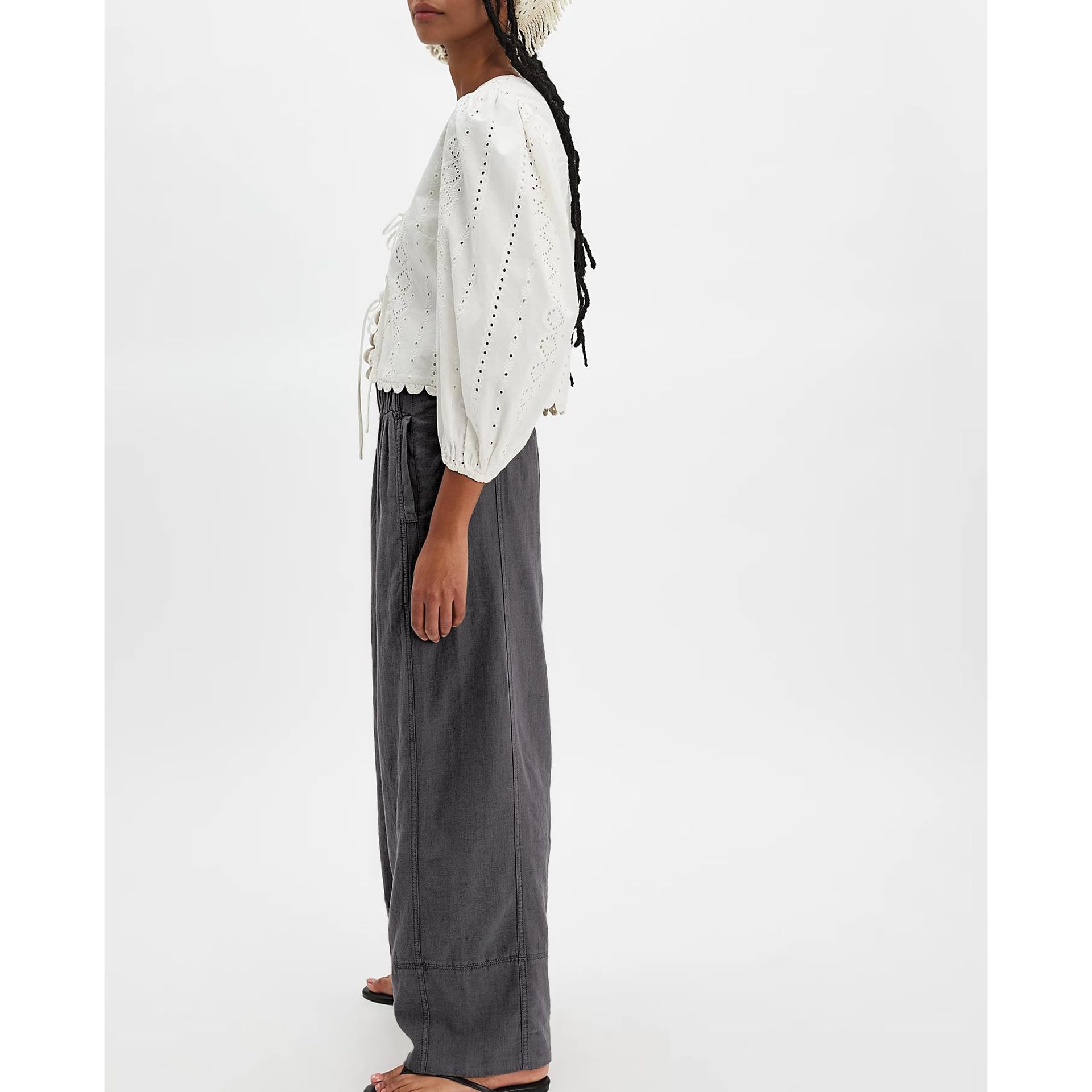 2025 ヨーロッパとアメリカのクロスボーダー独立系春カジュアルパンツレディースリネンルーズカジュアル無地ワイドレッグパンツ9点パンツ