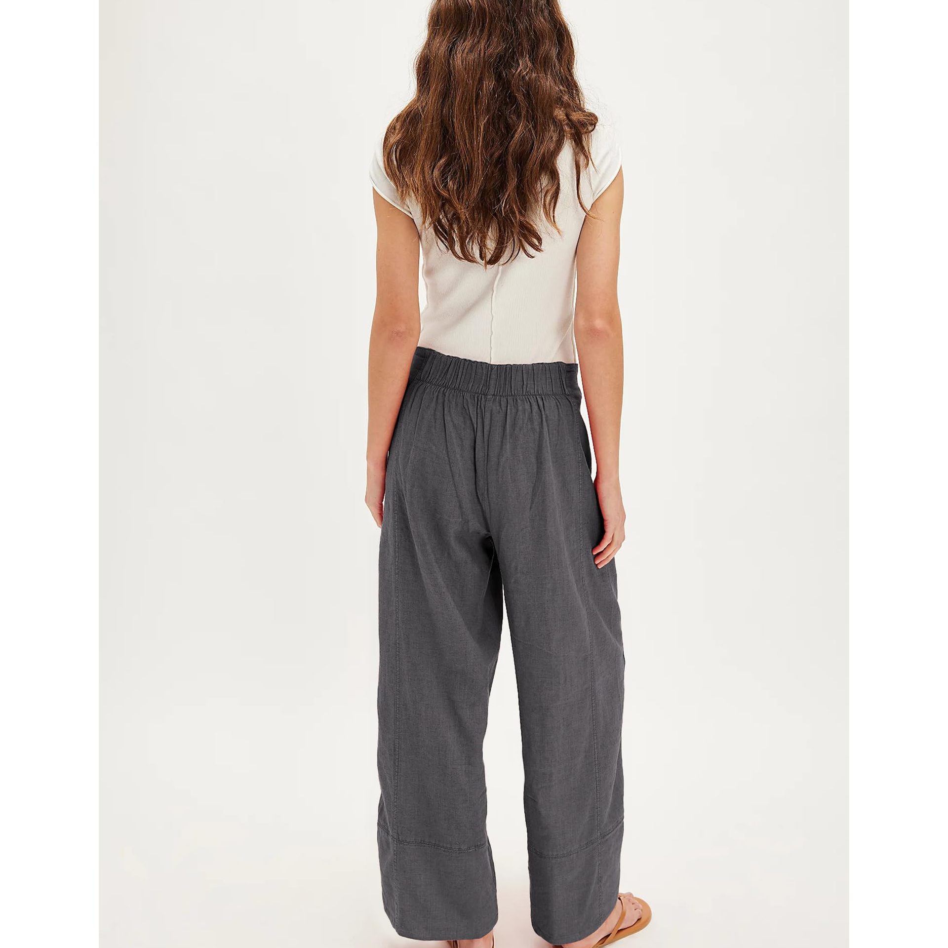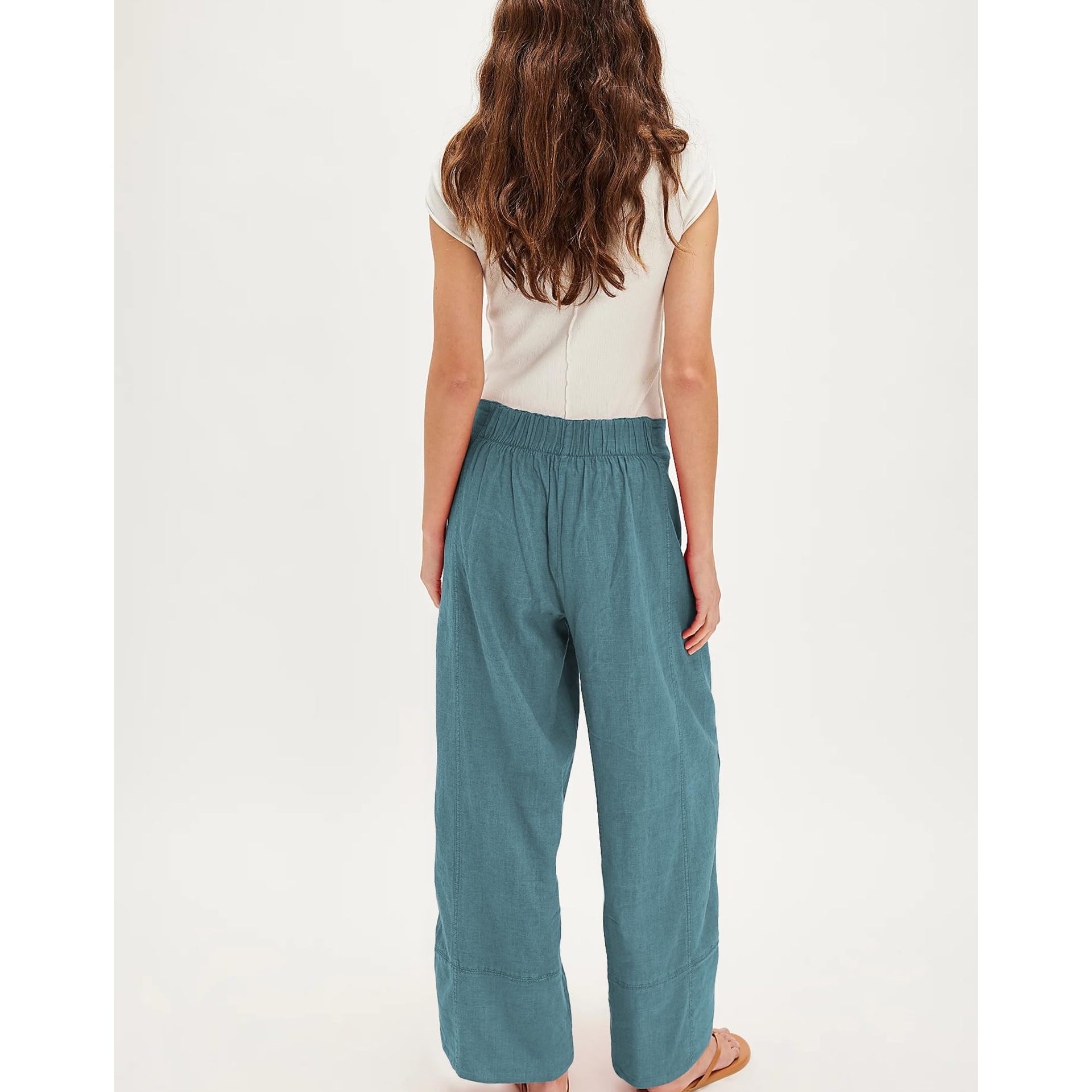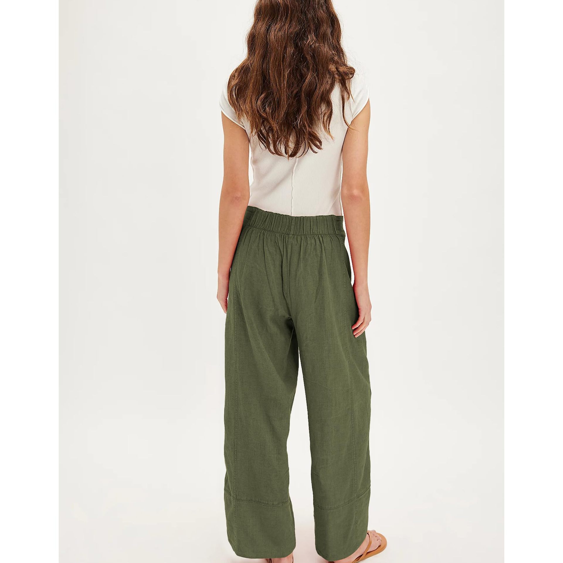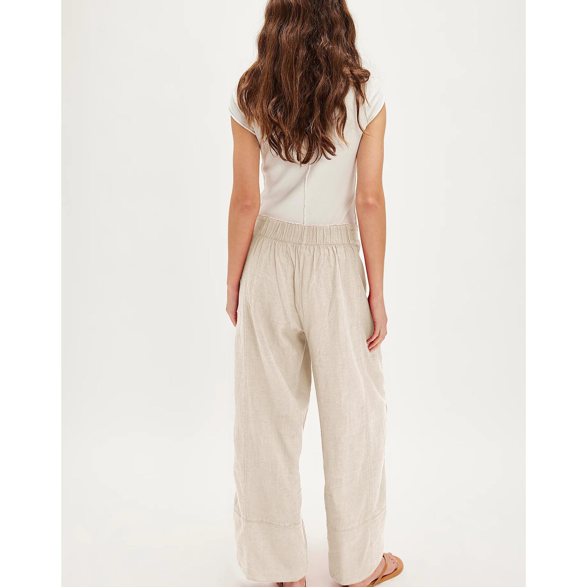 跨境女式休闲阔腿亚麻裤松紧中腰裤带口袋舒适飘逸阔腿沙滩裤女