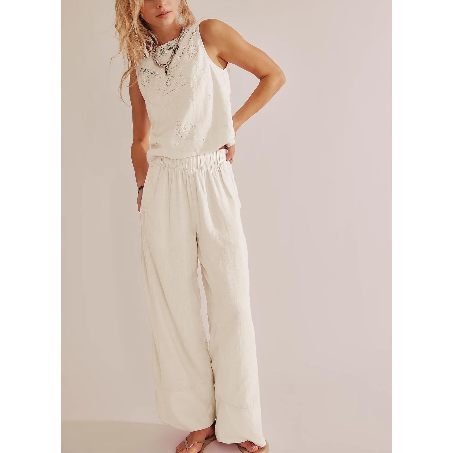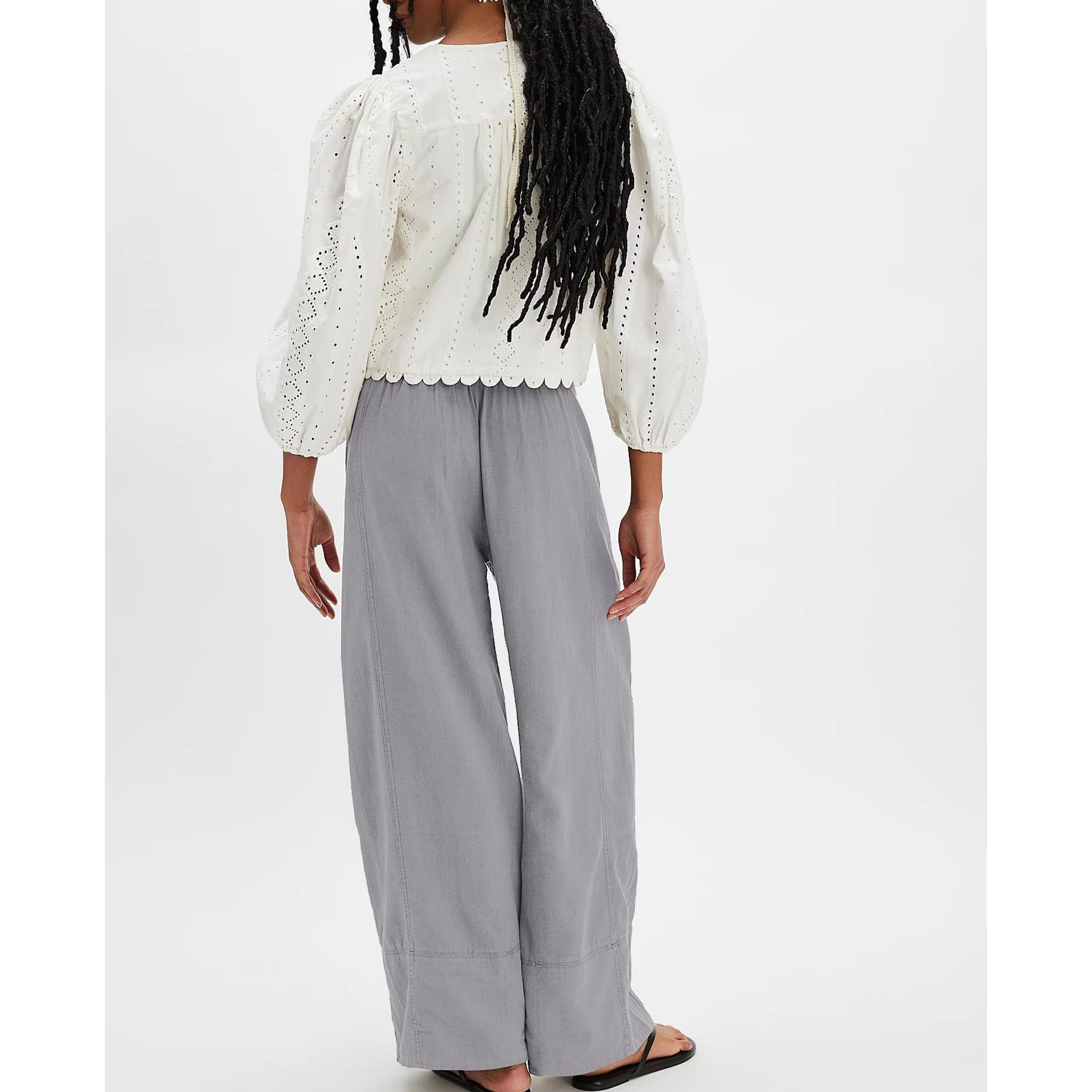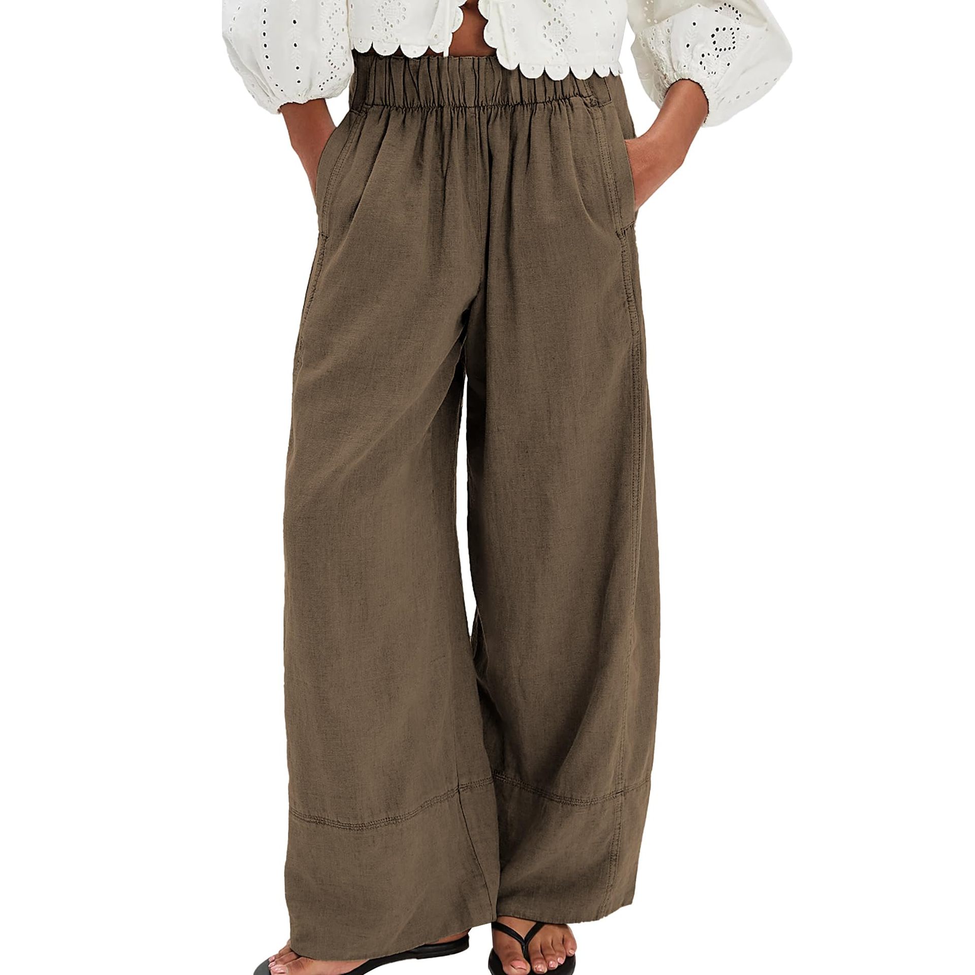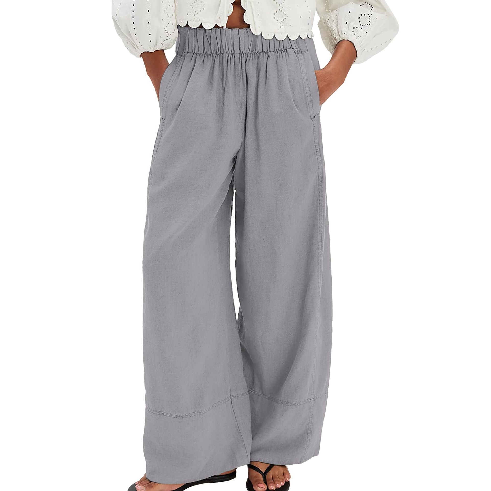 2025 ヨーロッパとアメリカのクロスボーダー Amazon レディース リネン サマー ワイドレッグ パンツ エレガント ワイドレッグ レスト ポケット付きパンツ