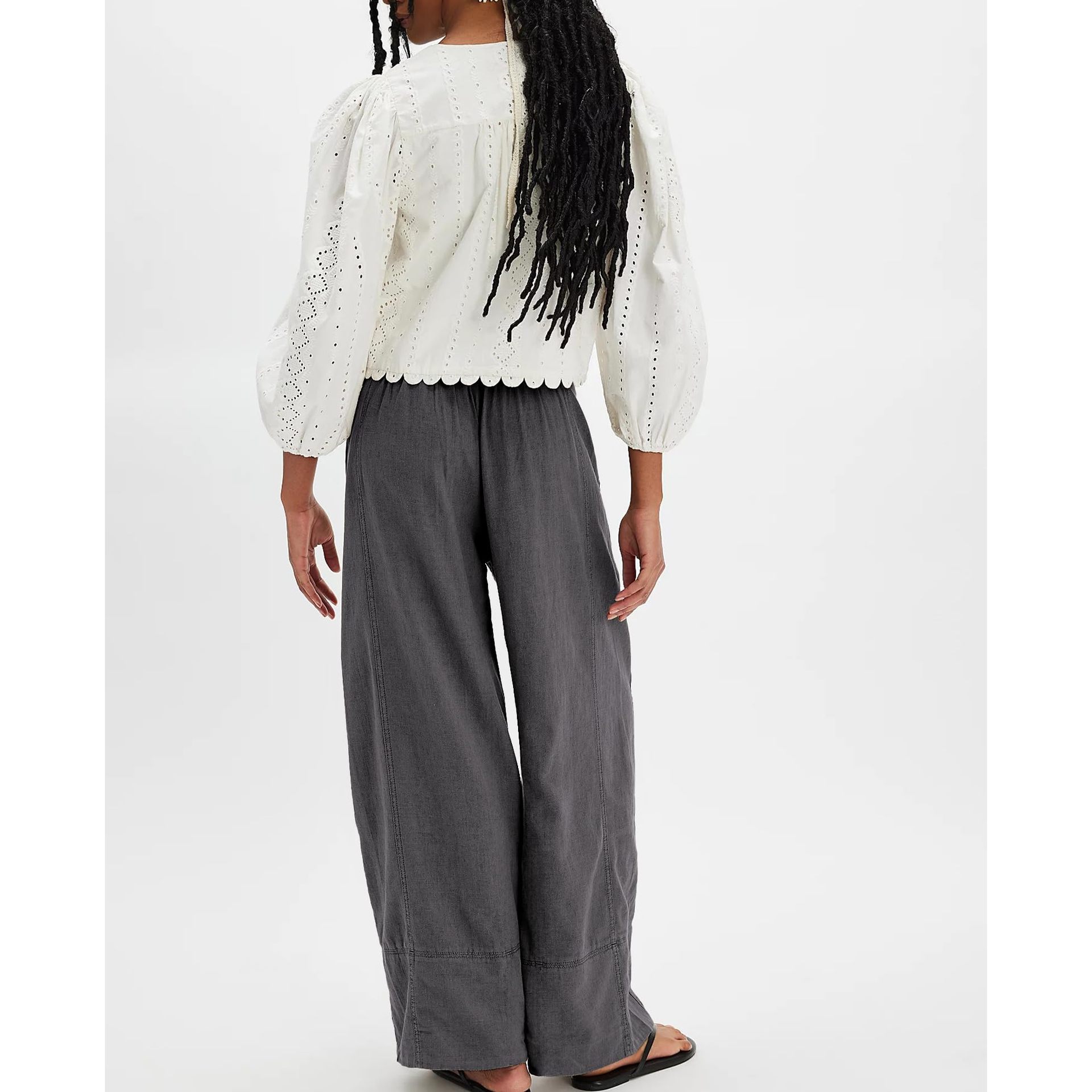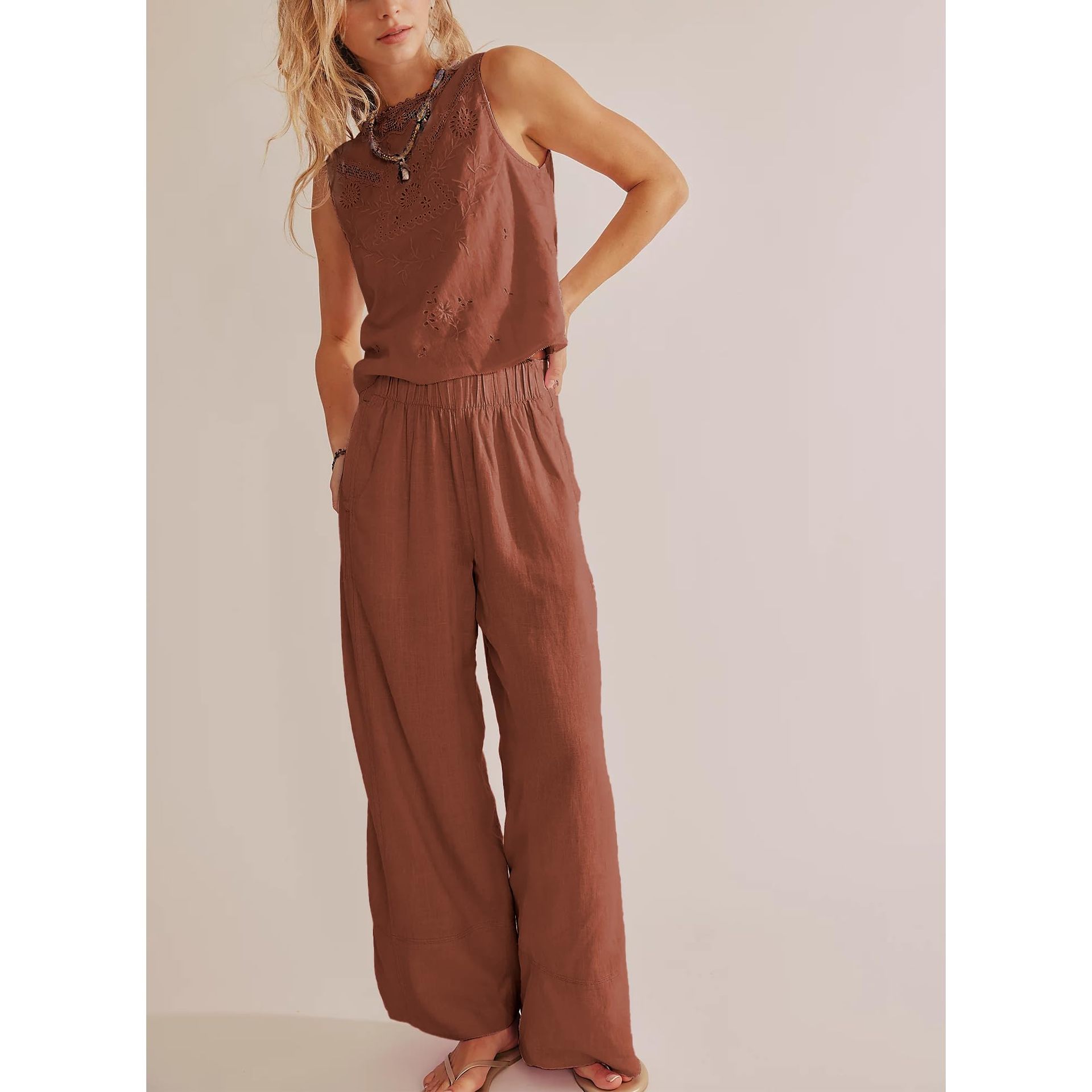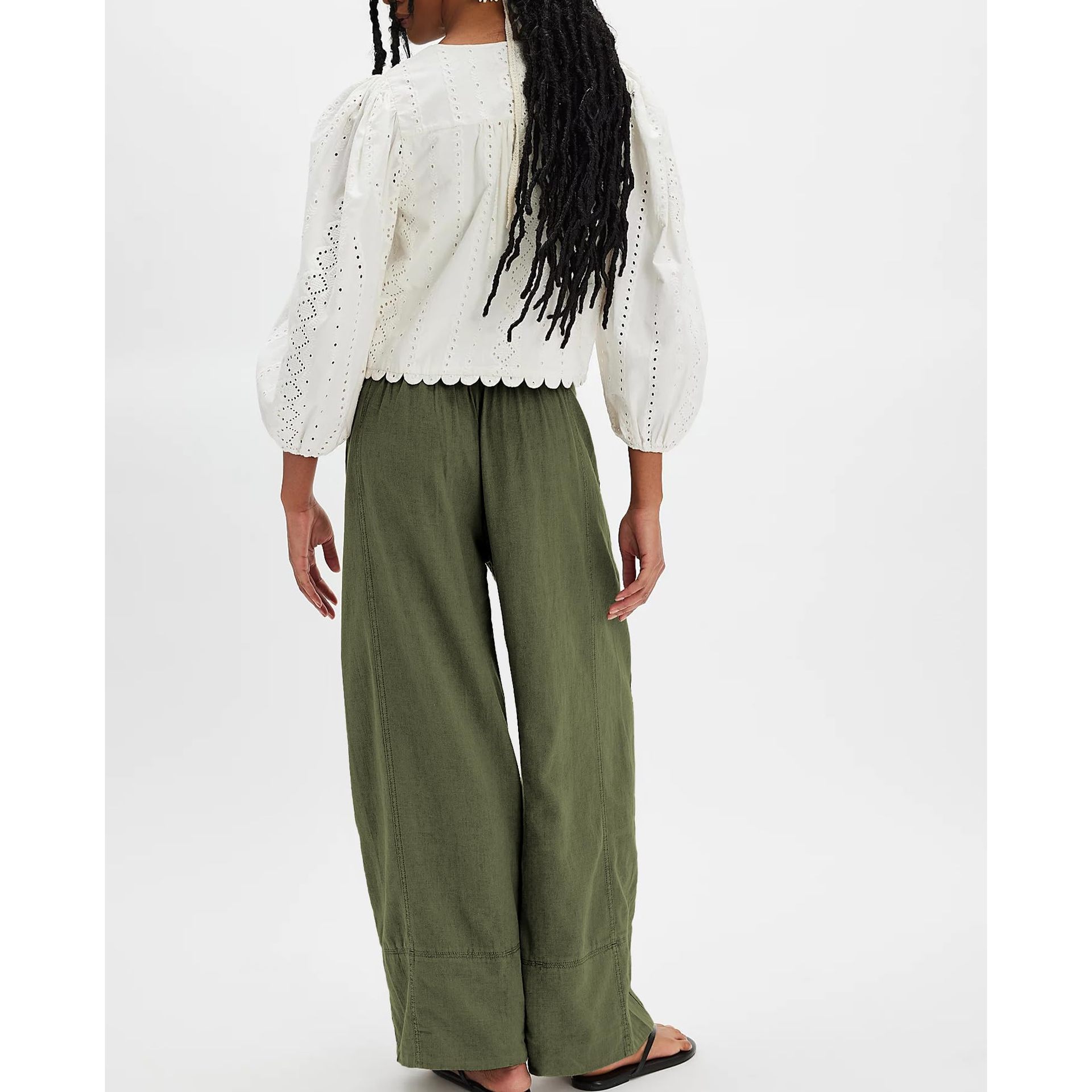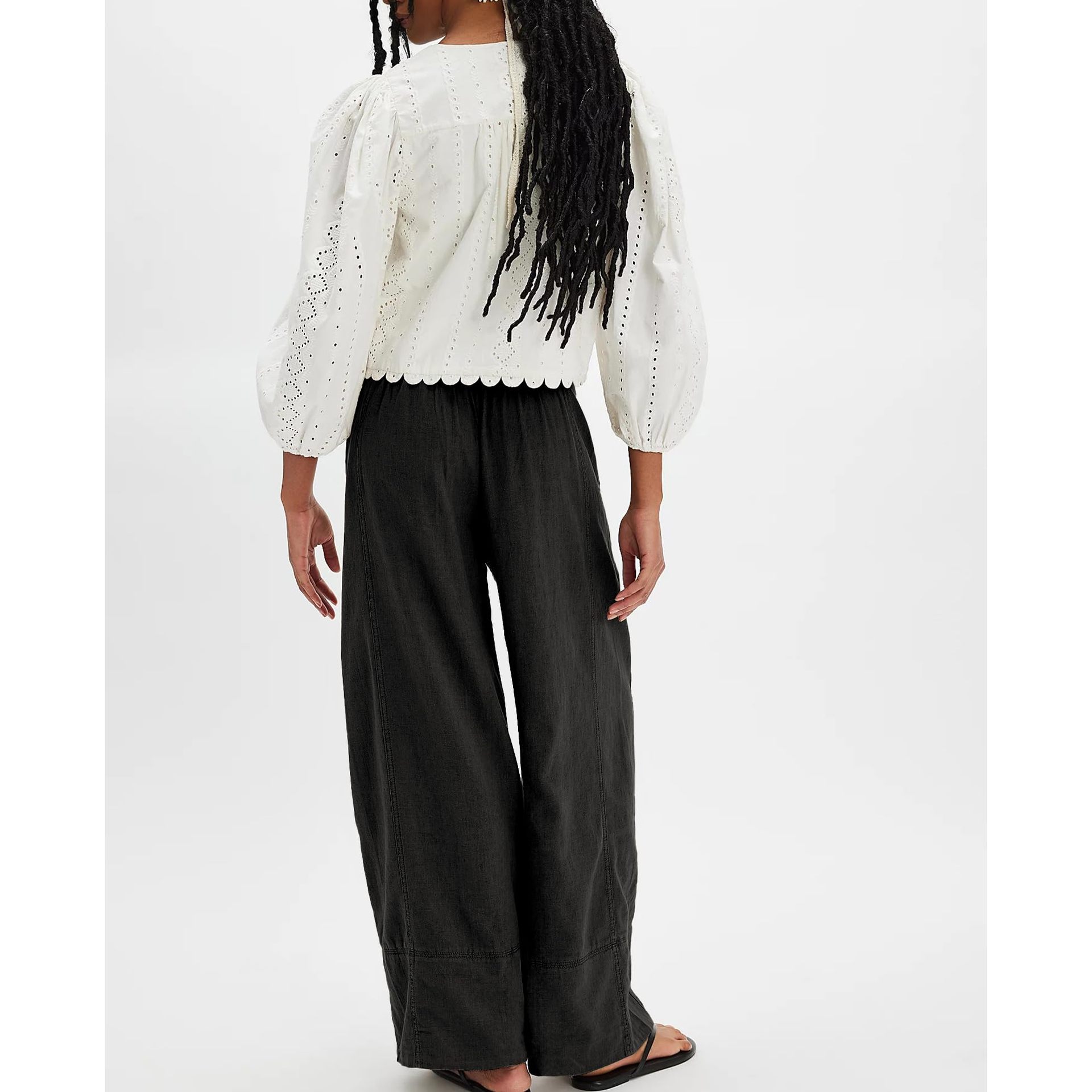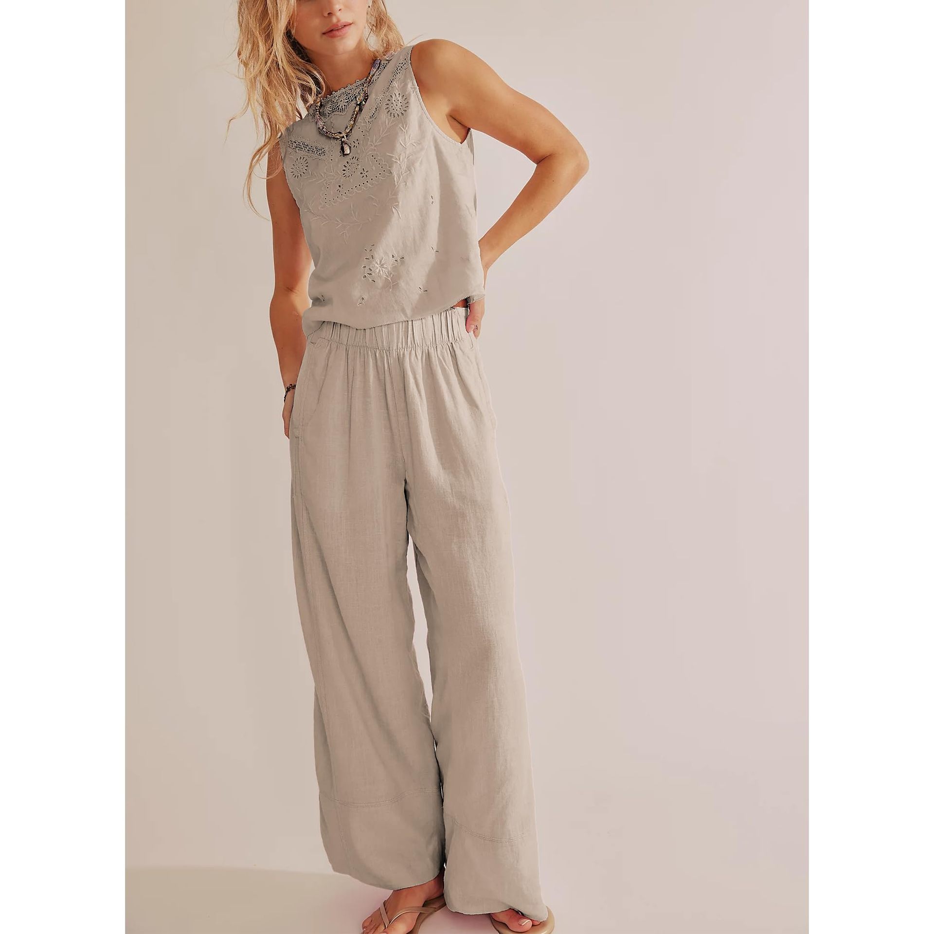 2025 ヨーロッパとアメリカのクロスボーダー Amazon レディース リネン サマー ワイドレッグ パンツ エレガント ワイドレッグ レスト ポケット付きパンツ