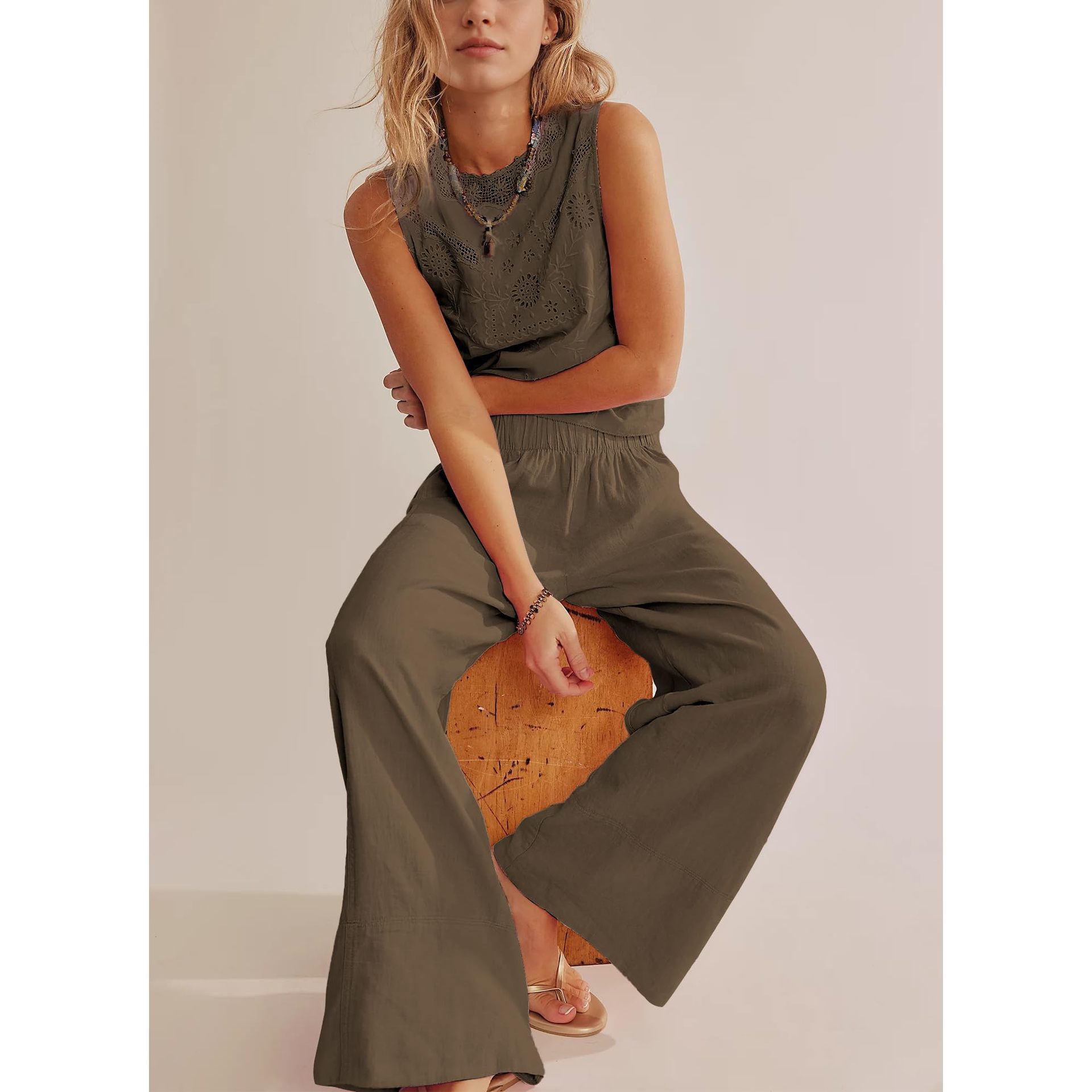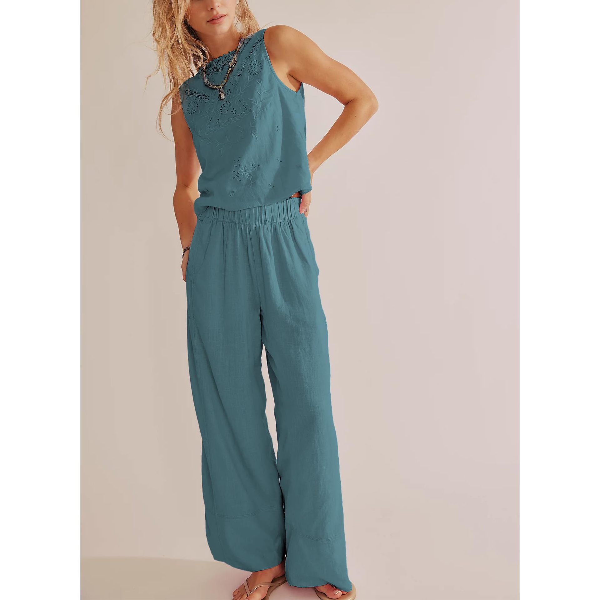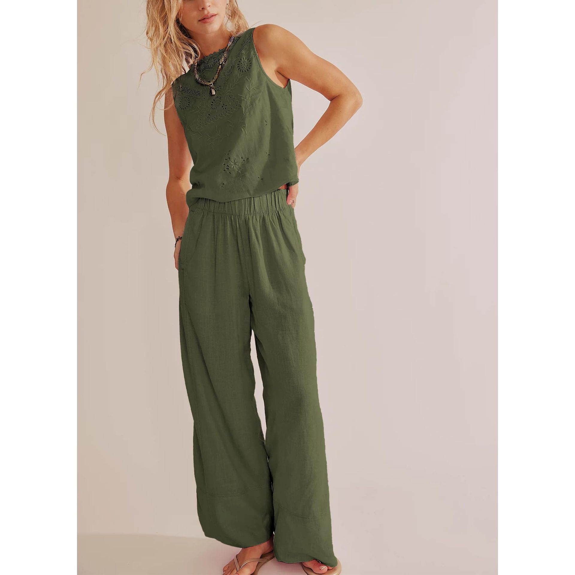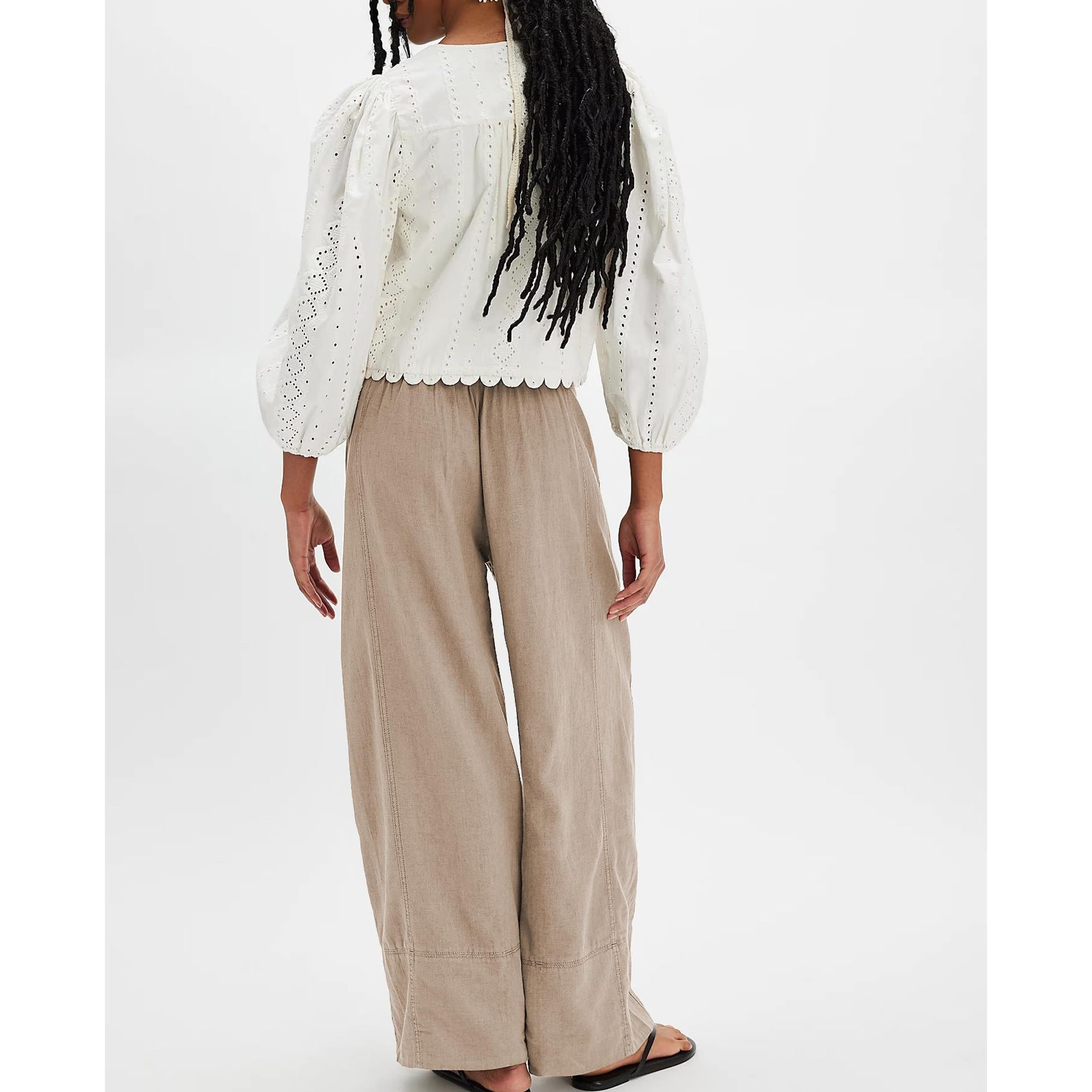 2025 ヨーロッパとアメリカのクロスボーダー Amazon レディース リネン サマー ワイドレッグ パンツ エレガント ワイドレッグ レスト ポケット付きパンツ