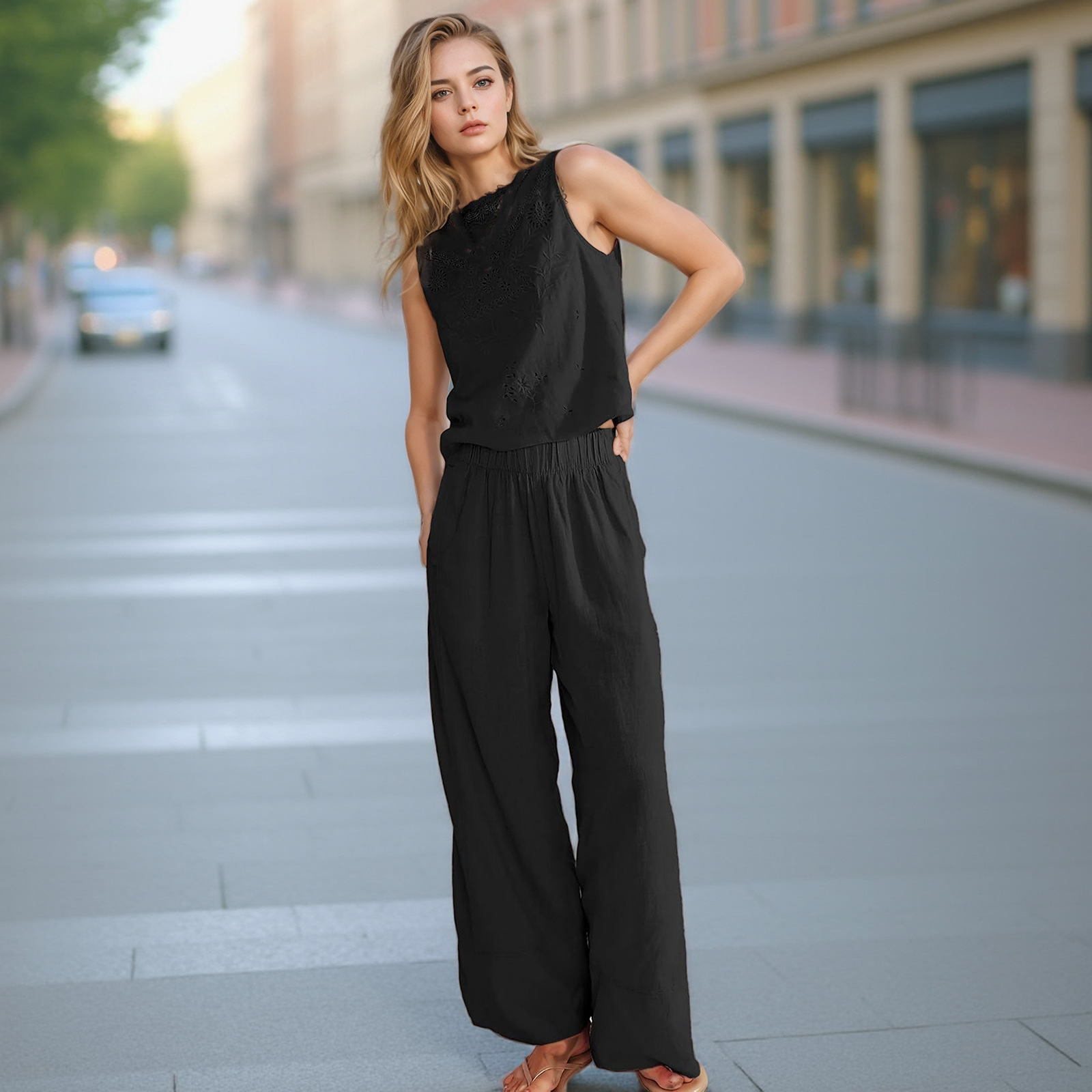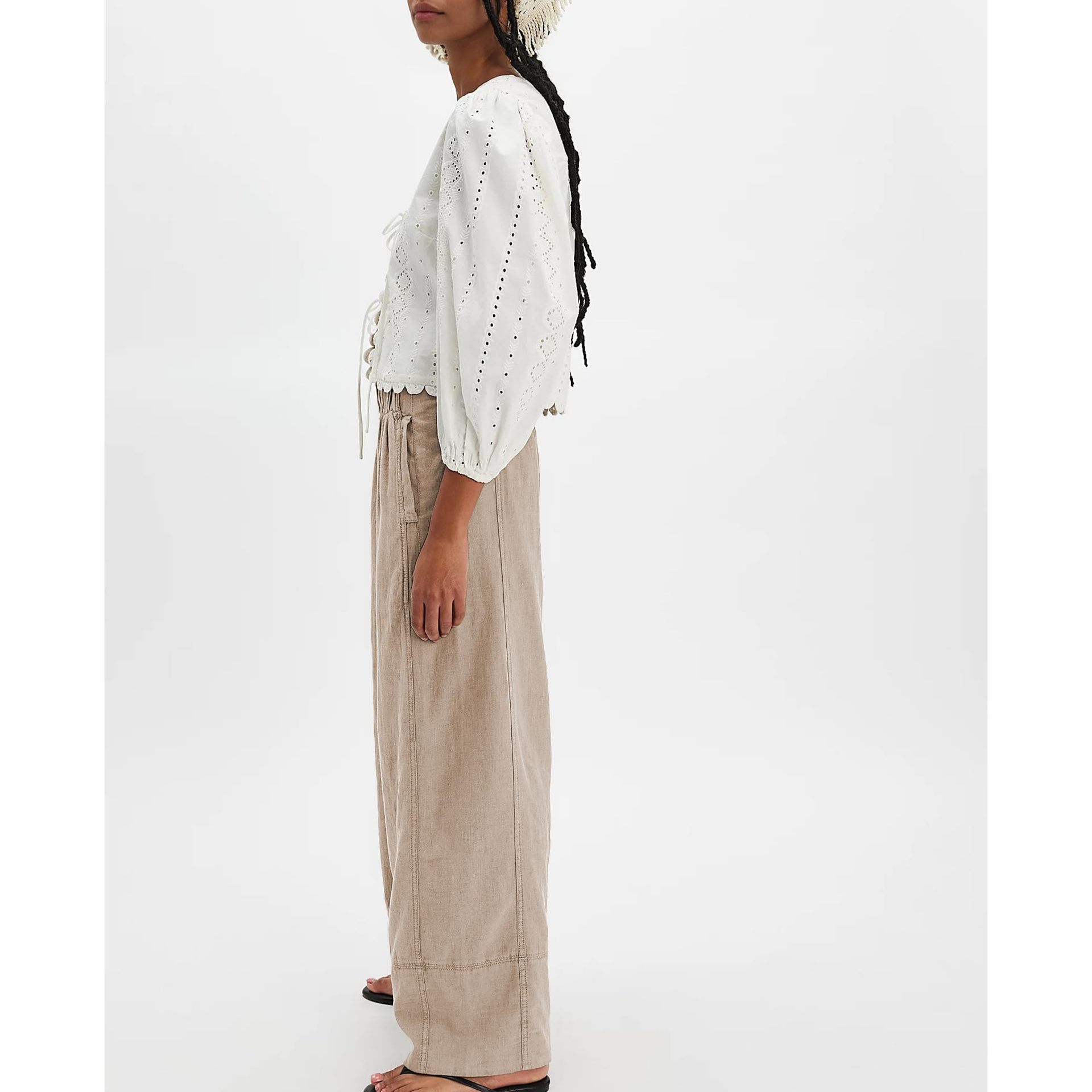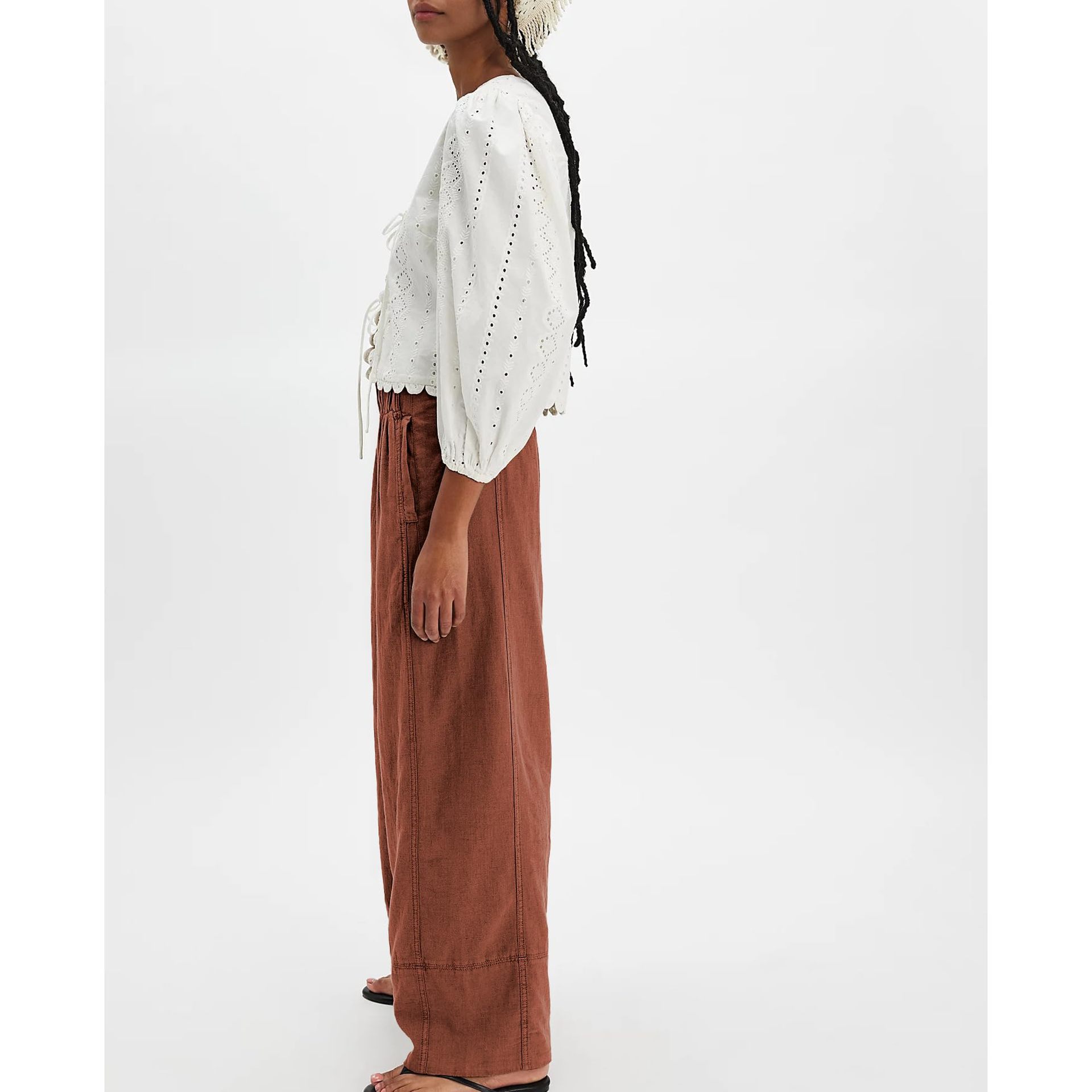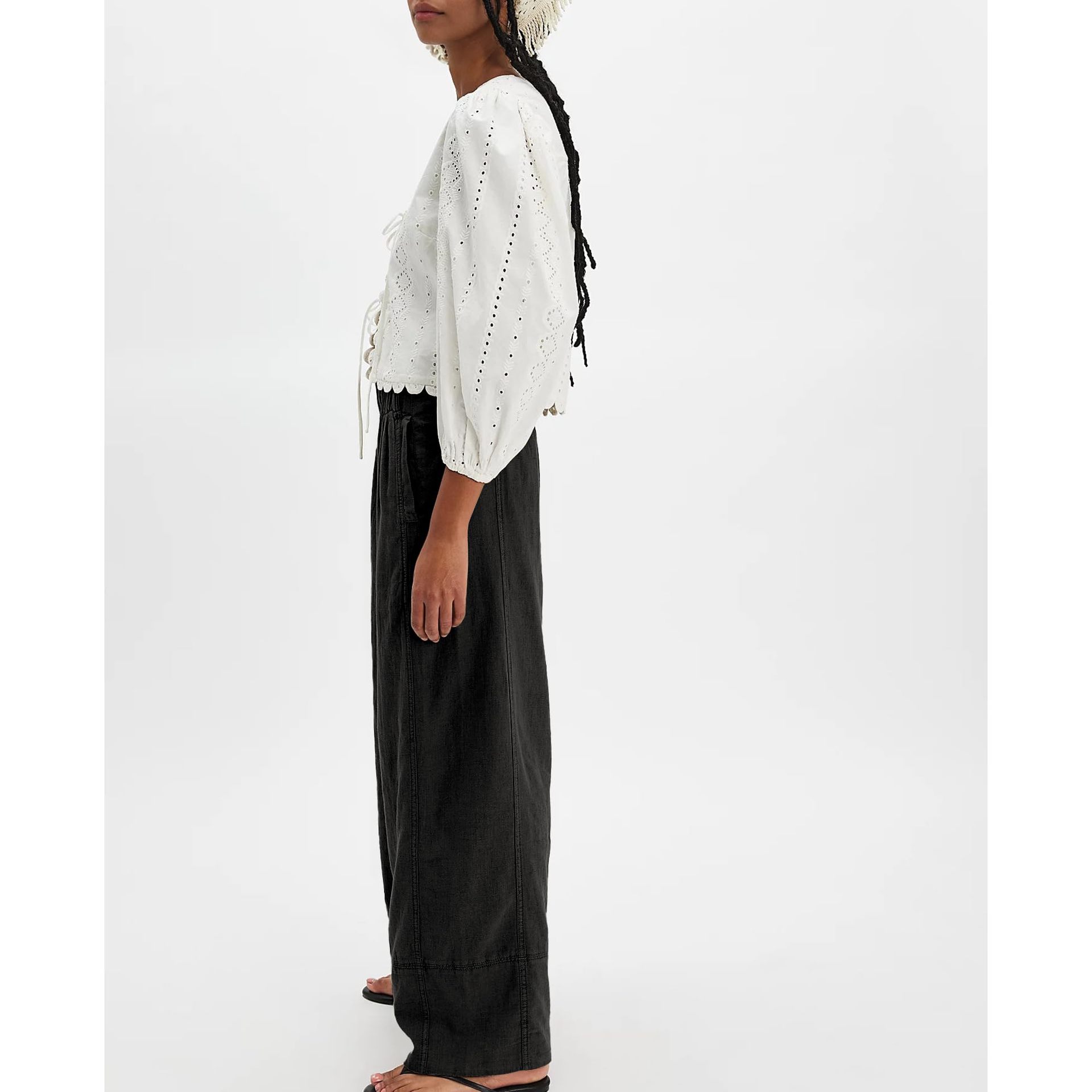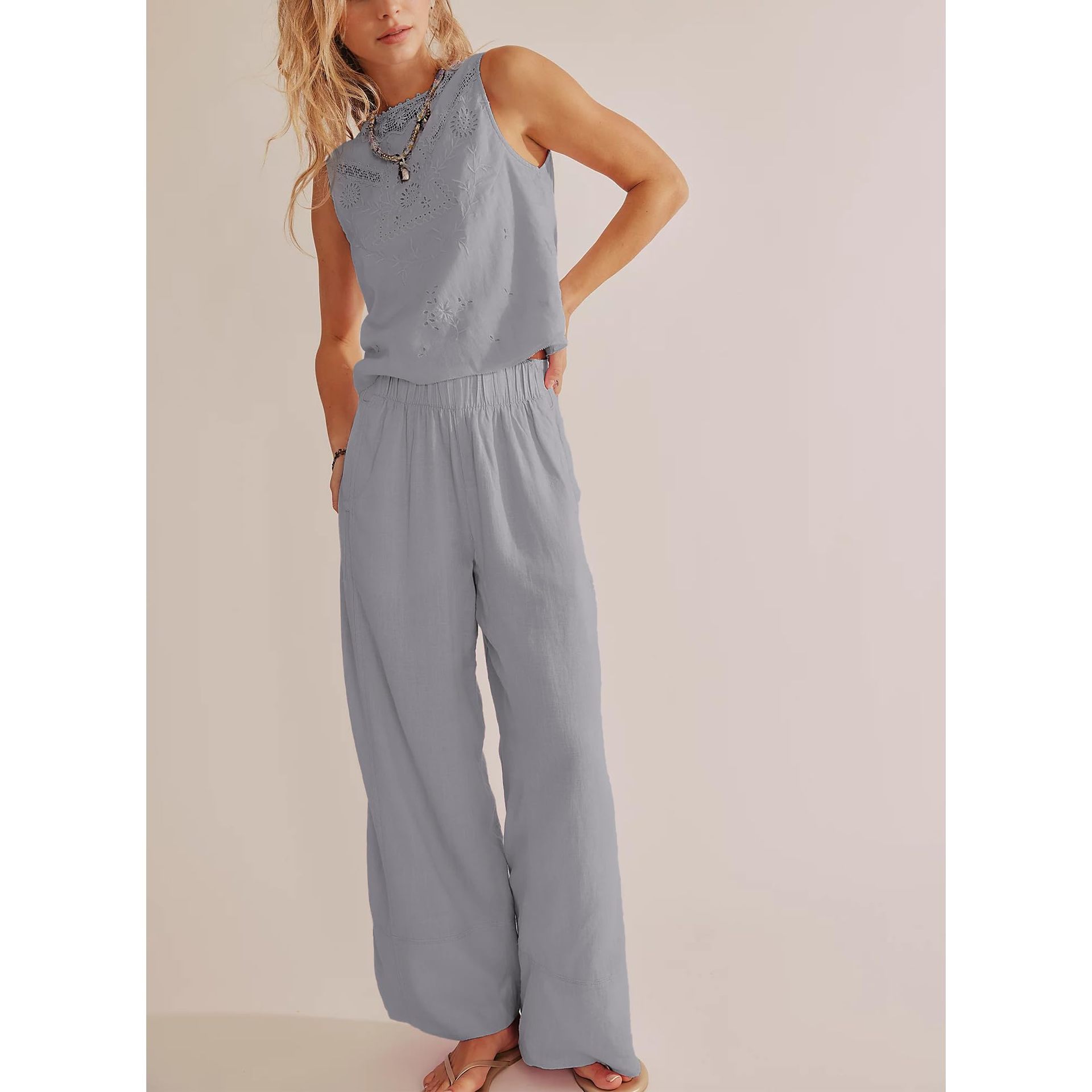 2025 ヨーロッパとアメリカのクロスボーダー Amazon レディース リネン サマー ワイドレッグ パンツ エレガント ワイドレッグ レスト ポケット付きパンツ