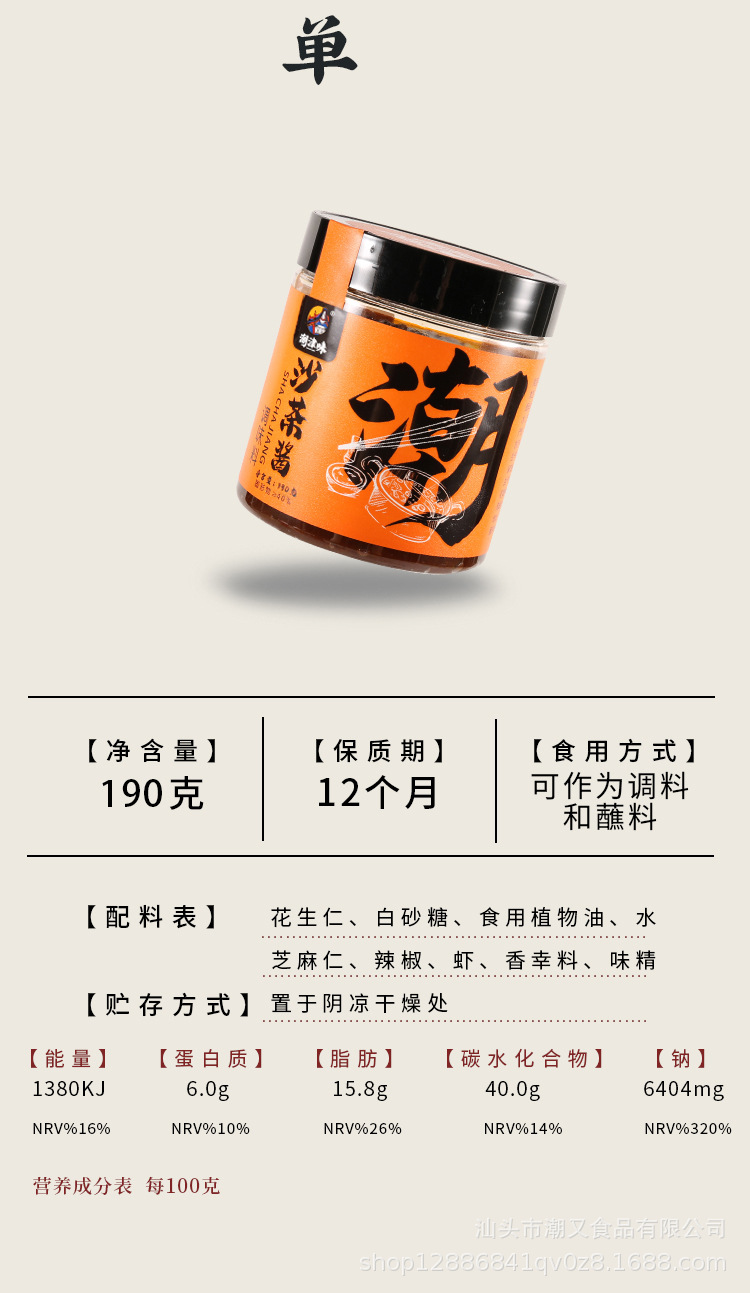 潮津味正宗潮汕沙茶酱牛肉火锅酱沙爹酱牛肉丸蘸酱拌面酱网红热销