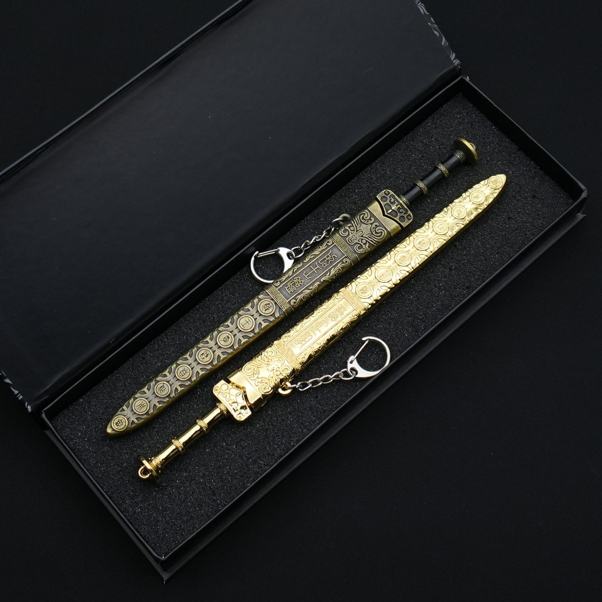 ミニ古代の有名な剣 12cm 秦王剣金属武器装飾品勾践剣モデルおもちゃキーホルダーペンダント