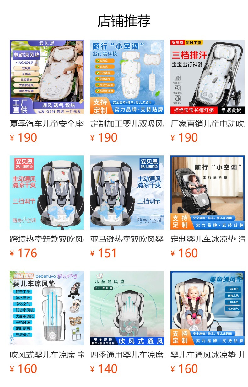 宝宝婴儿车水冷通风坐垫安全座椅清凉透气降温儿童餐椅风扇凉垫