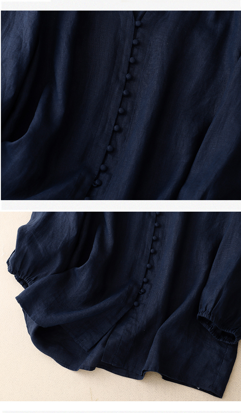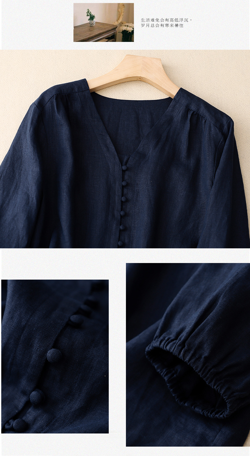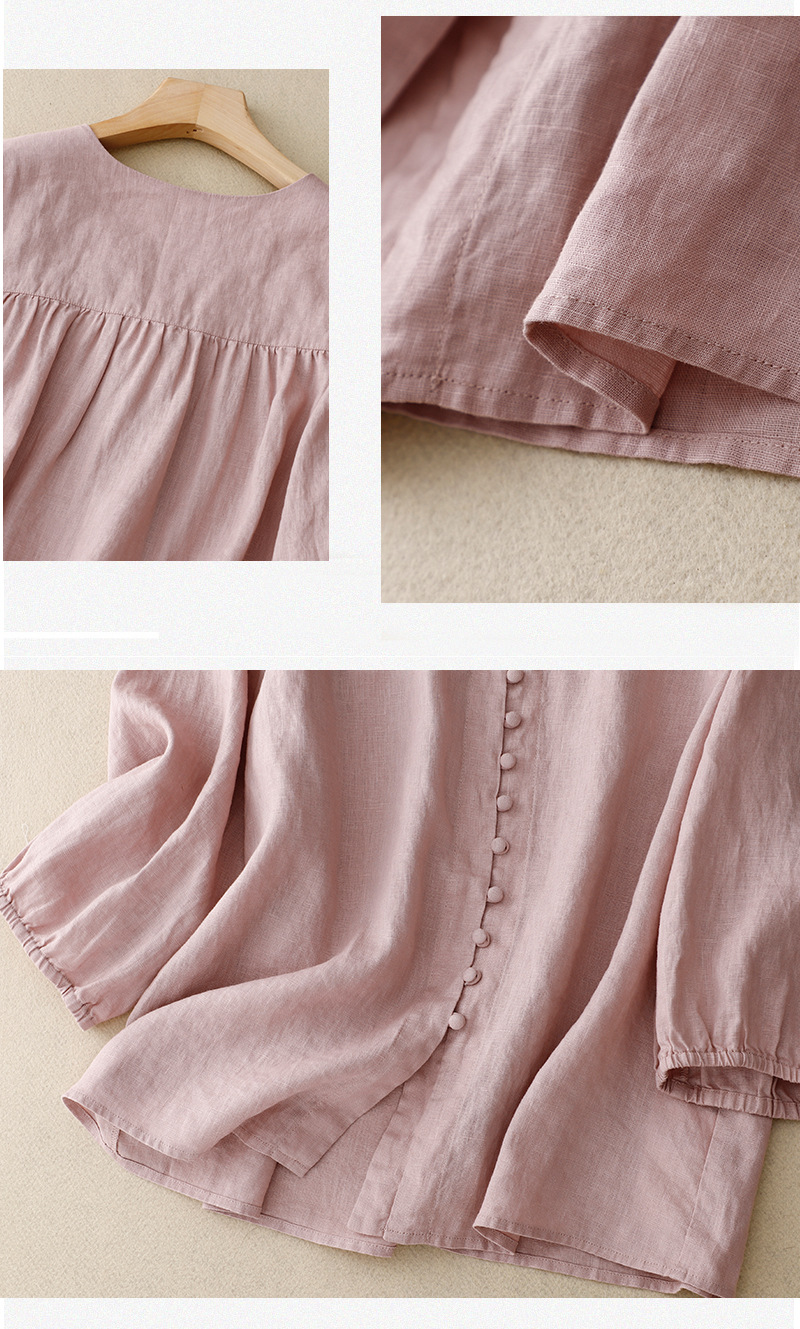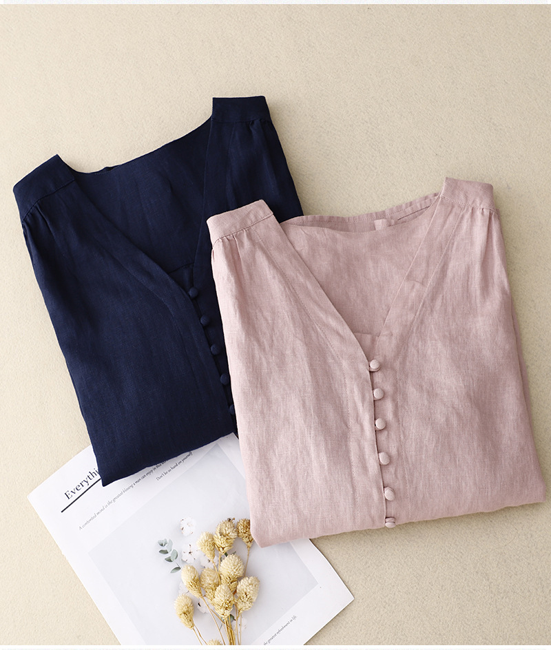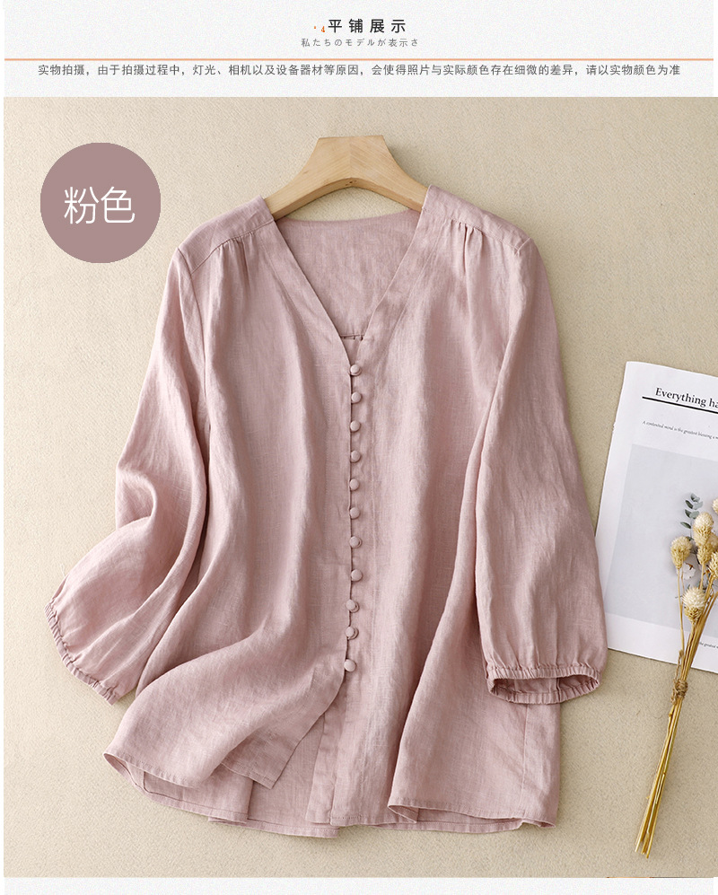 女性用七分袖ラミーシャツ、夏デザイン、ニッチカジュアル気質、Vネックシングルブレストシックトップス