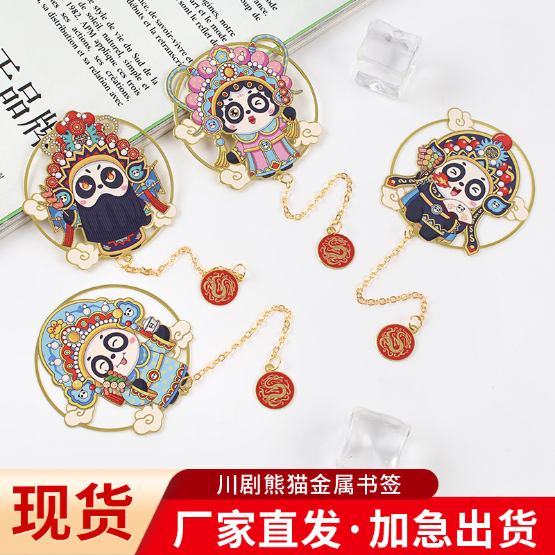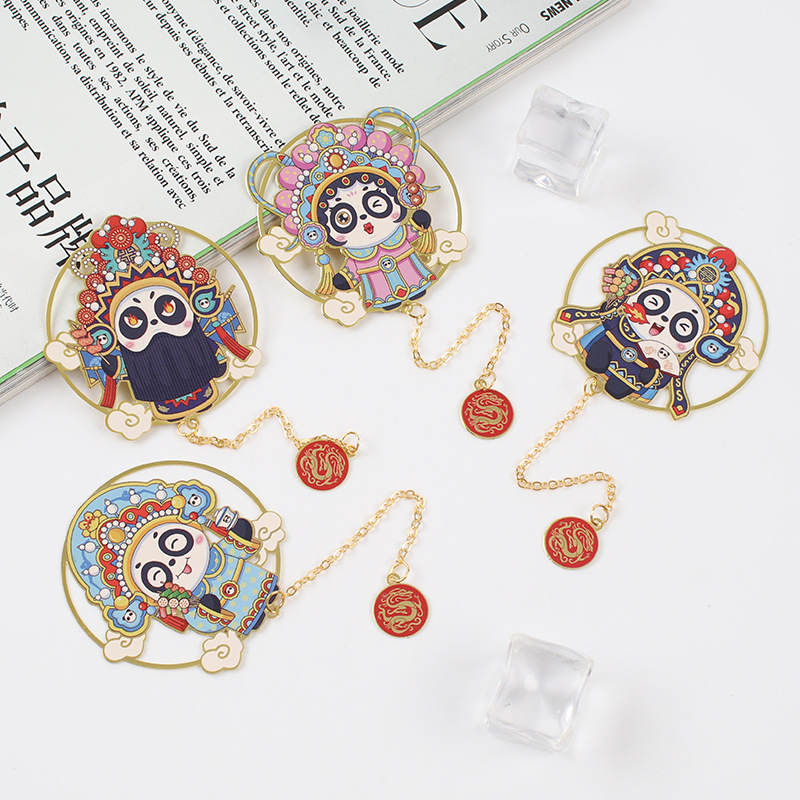 中国风镂空可爱熊猫金属书签国粹川剧变脸国风学生用阅读书夹定制