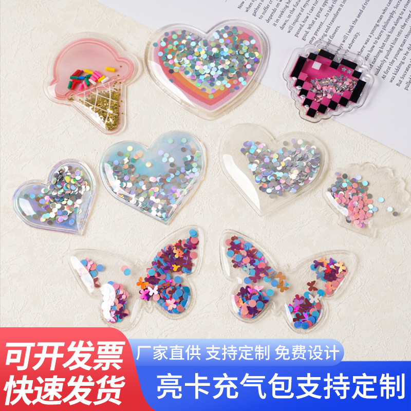 羽绒充气标立体透明亮片流沙挂饰高端亚马逊服装商标洗唛气泡定制