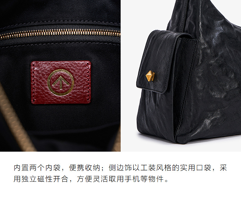 GROTTO 25年トーストホーボーバッグ 植物タンニン鞣し羊革 脇の下に挟むショルダーバッグ クロスボディバッグ レディースバッグ カジュアルで万能