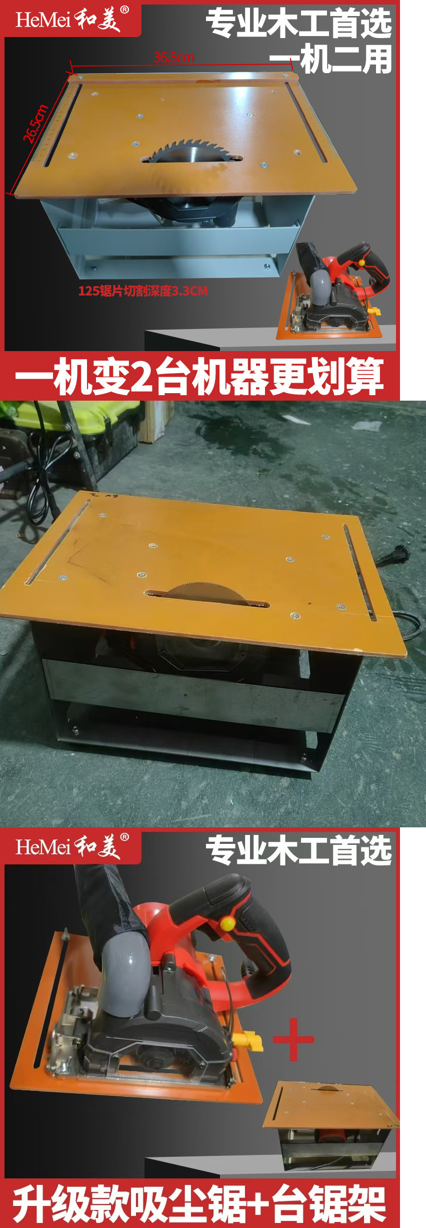 無塵鋸、木工テーブルソー、フローリング専用切断機、両用多機能電動のこぎりをフリップオーバーのテーブルソーに改造