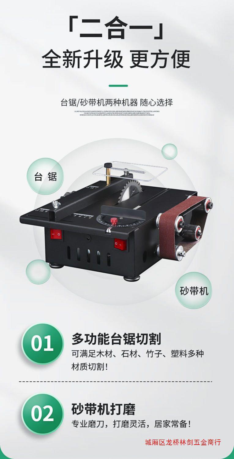 家庭用ミニデスクトップ小型テーブルソー切断機木工モデルソー電動のこぎり小型ベルトサンダー研削アーティファクト
