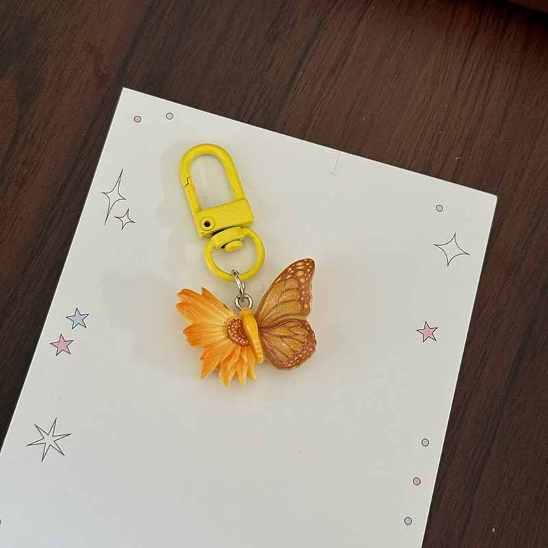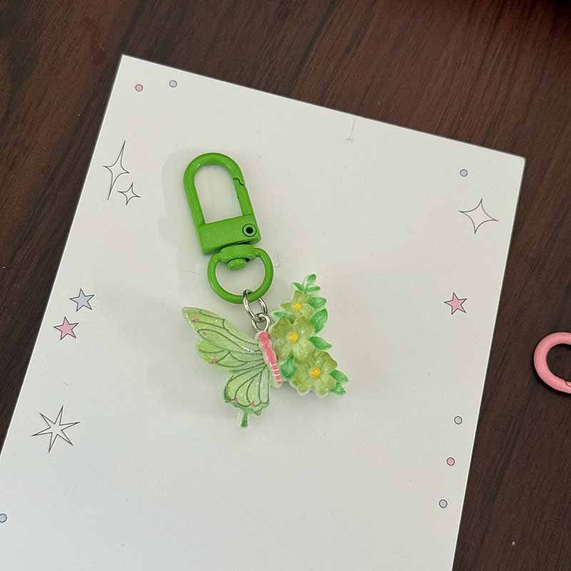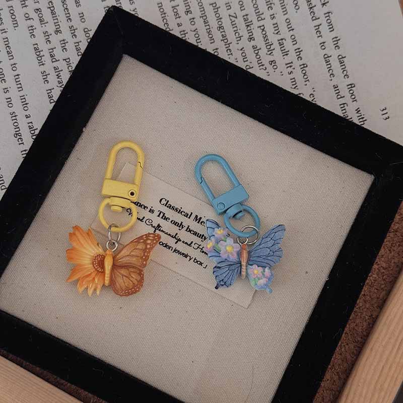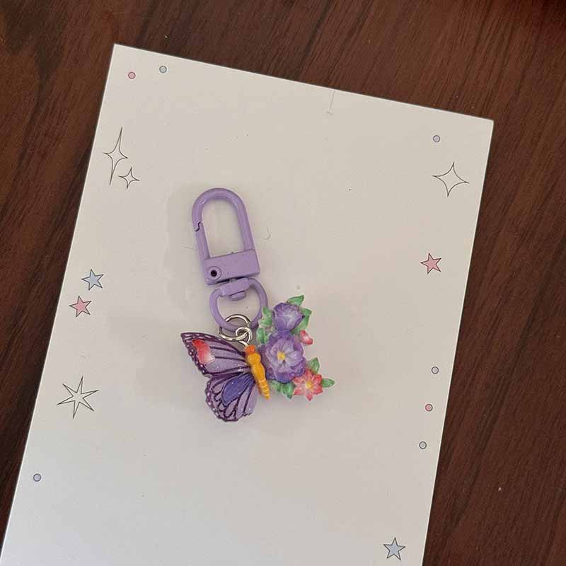 カラフルなバックル L60 春の新スタイルのカラフルな油絵花蝶キーホルダーガールハートフォレストスタイルの美しいペンダントクリエイティブ