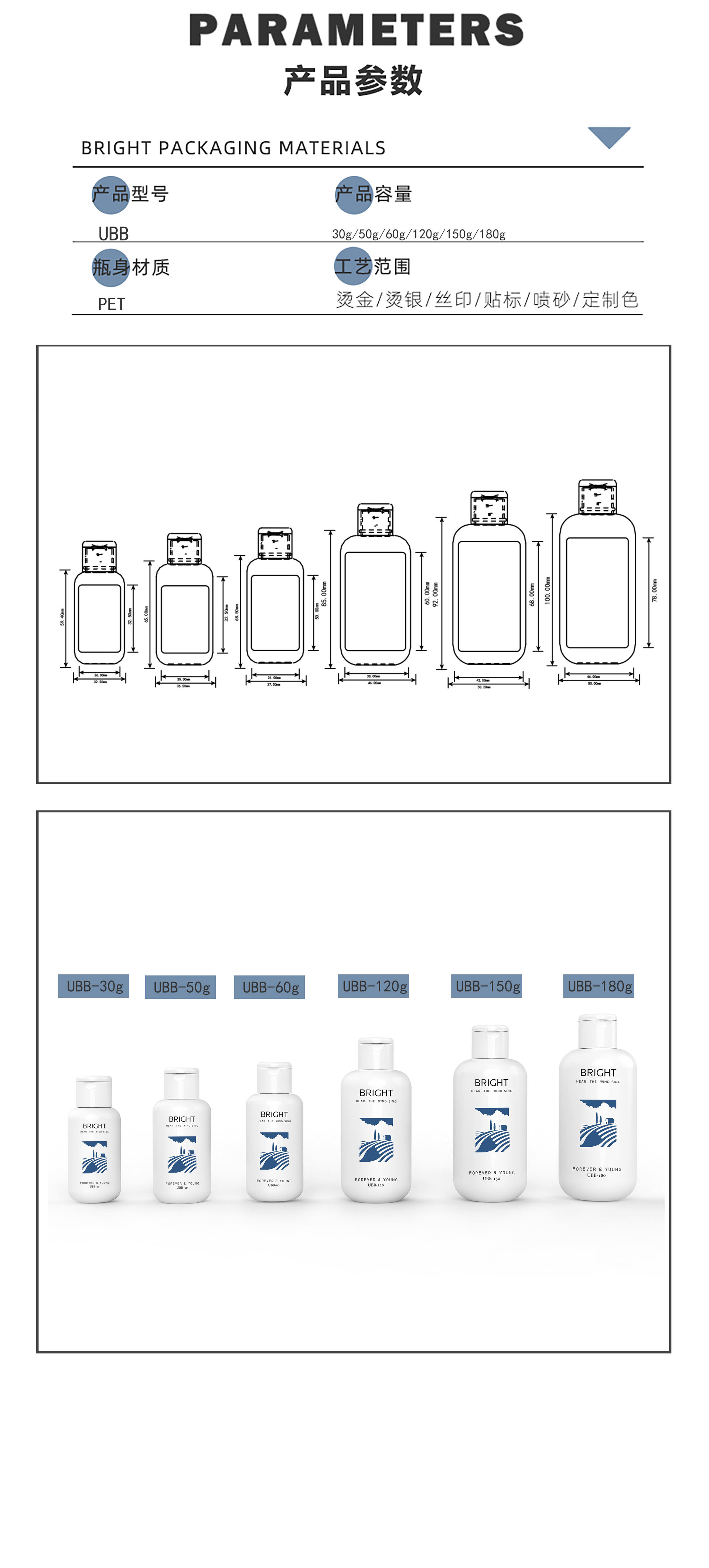 仕様とモデル 30ml;UBB-ホワイト;ペット,50ml;UBB-ホワイト;ペット,60ml;UBB-ホワイト;ペット,120ml;UBB-ホワイト;ペット,150ml;UBB-ホワイト;ペット,180ml;UBB-ホワイト;ペット