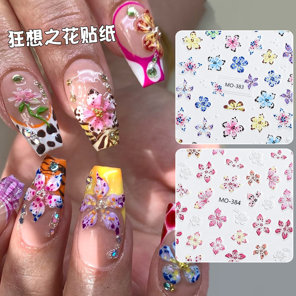 国境を越えた対外貿易で人気のレリーフネイルシール欧米ins風狂想の花シリーズ爪シール装飾品