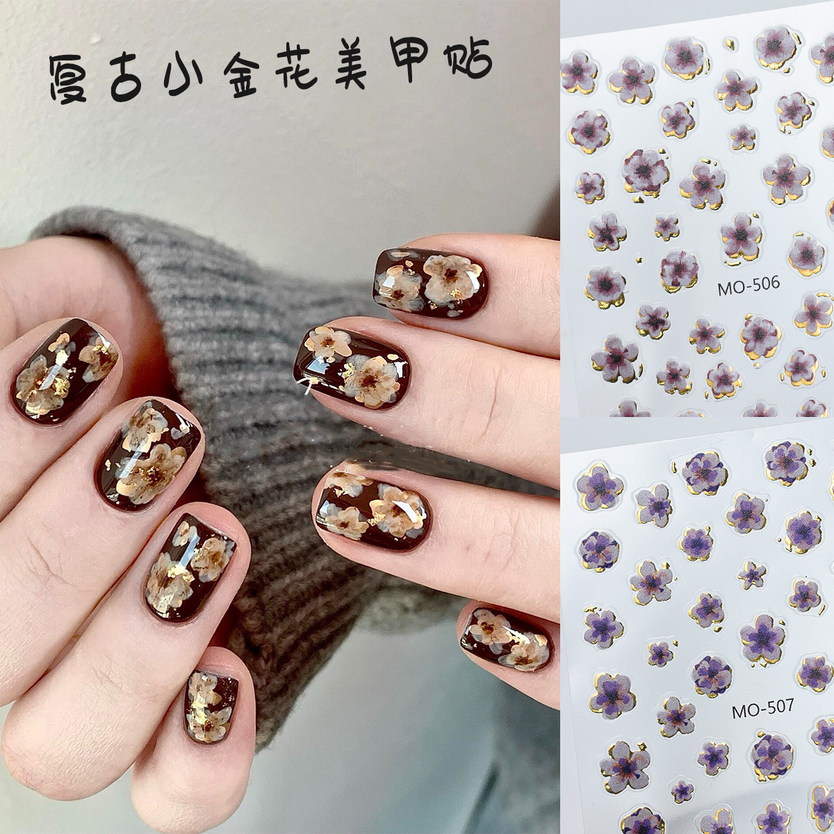 新しいネットの赤い黒色の小さい金の花の手描きの復古の小さい花の浮き彫りの美しい金の爪のシールの爆発の黒い金のお金の花