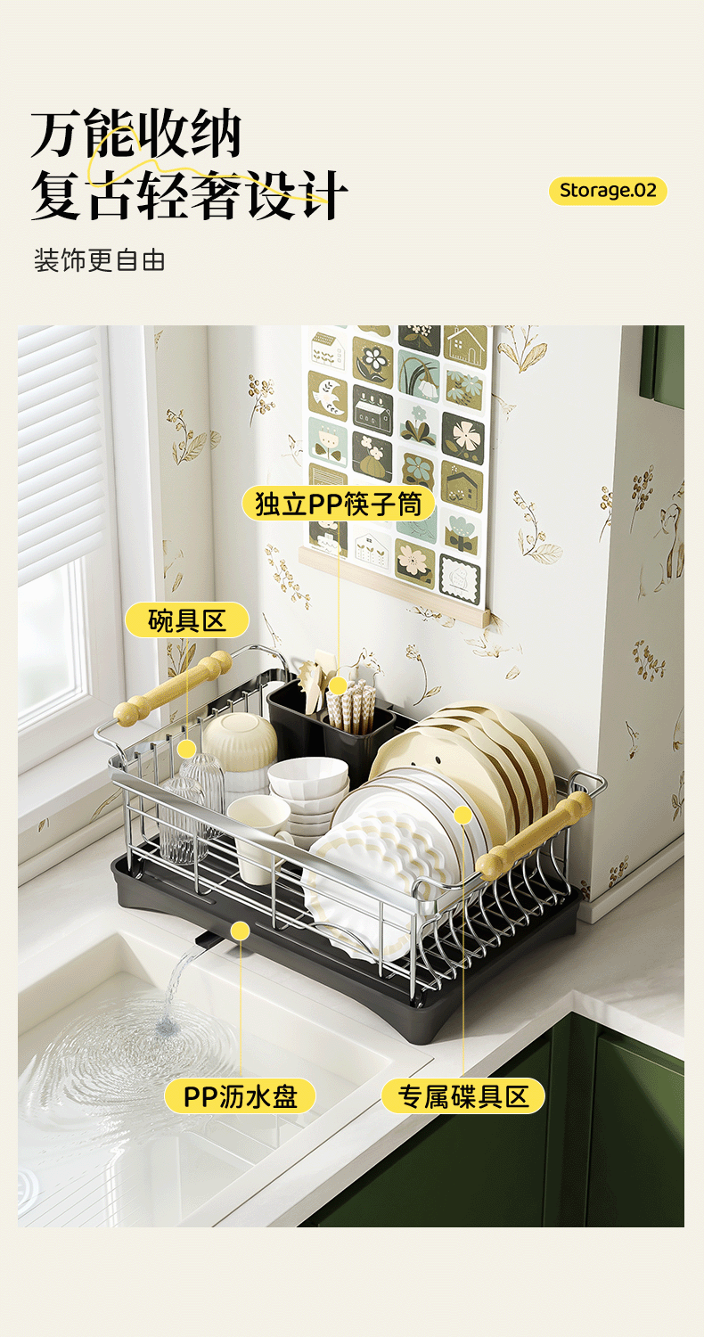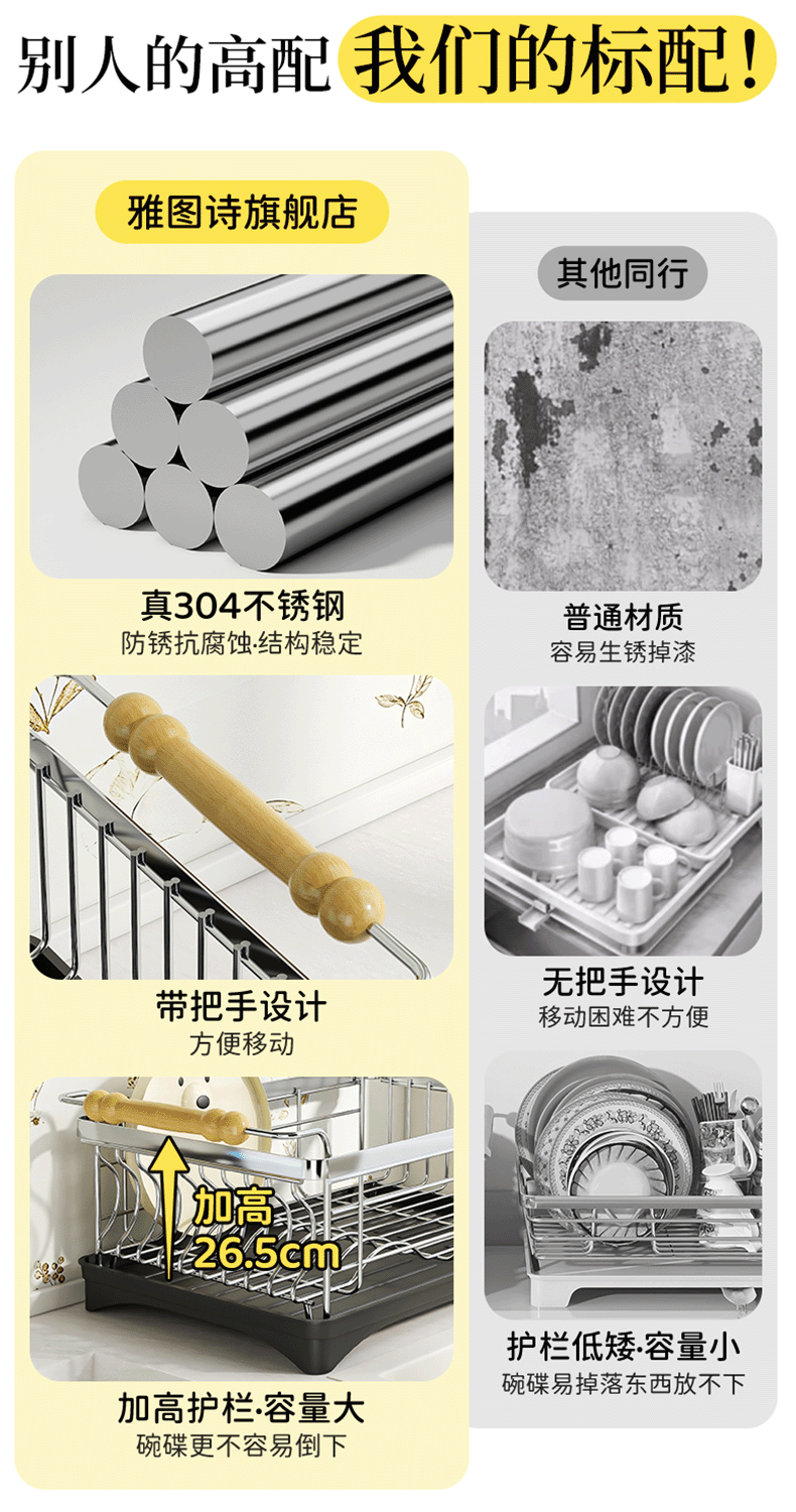 Chuangshengtian 水切りボウルとディッシュラックステンレス鋼のキッチン収納ラック食器用カウンタートップ水切りバスケットは 1 個からサポートします
