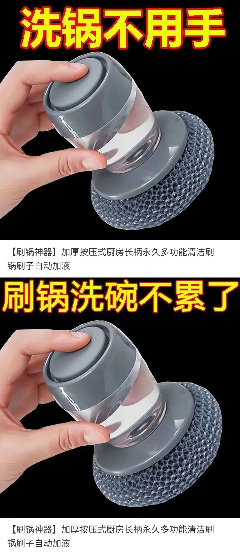 厚みのあるプッシュ式キッチン長柄永久多機能洗浄ポットブラシ自動液体添加厚みのあるプッシュ式キッチン